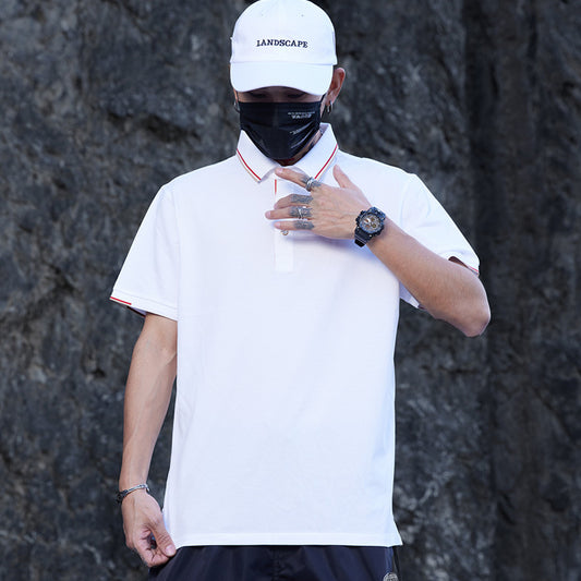 70 mercerized cotton polo shirt men's color collar regular polo shirt 2022 summer new lapel T-shirt printed logo