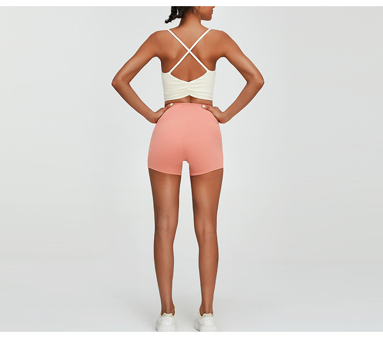 08/2024 Cross high waist yoga shorts tight nude peach hip sports shorts women's outdoor fitness pants 8843