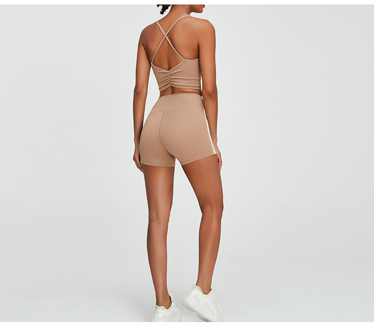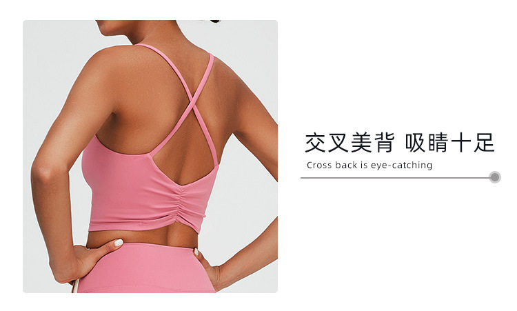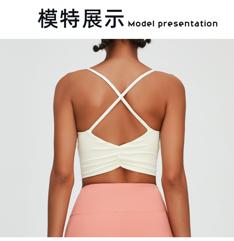 2022 new triangle beauty back fitness sports bra thin shoulder straps gathered nude yoga bra