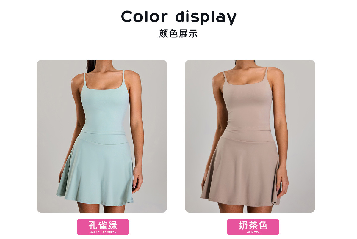 02/2025 Clearance-------------no restocking once sold out. Soft and seamless outdoor sports suit for women with suspenders and beautiful back yoga skirt, revealing and seamless fitness tennis suit