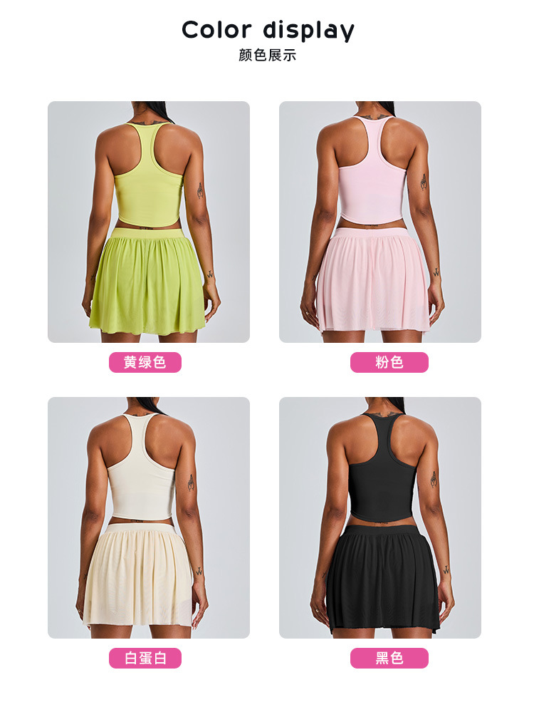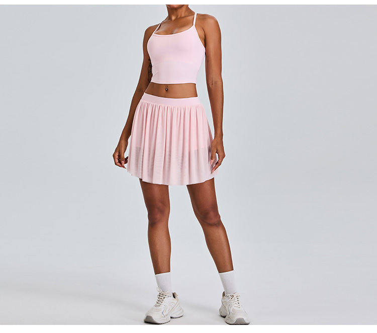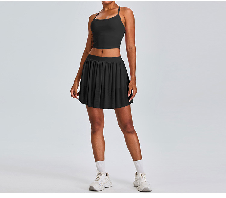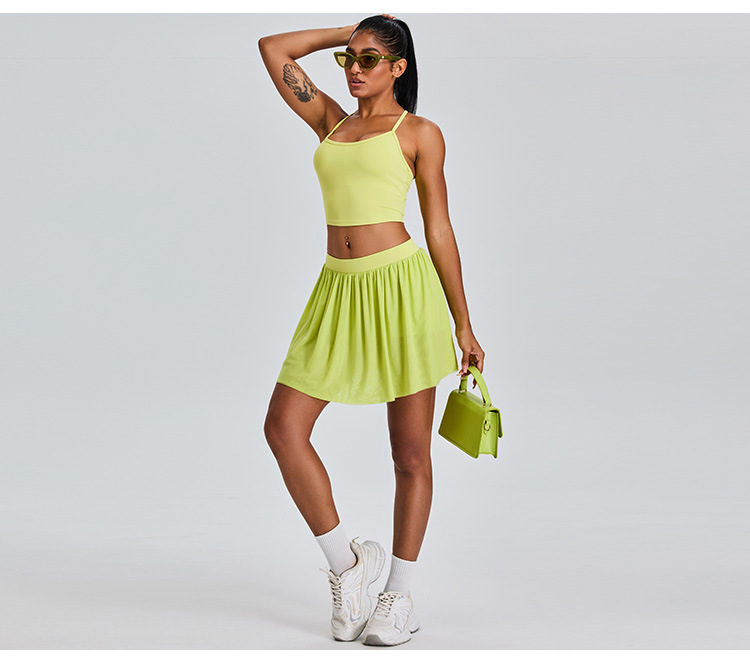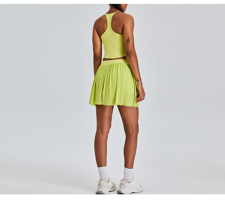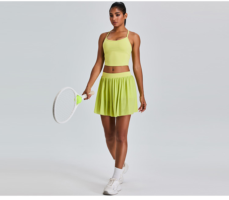 09/2024 New casual sports short skirt yoga suit women with lining mesh pleated tennis skirt fitness suit