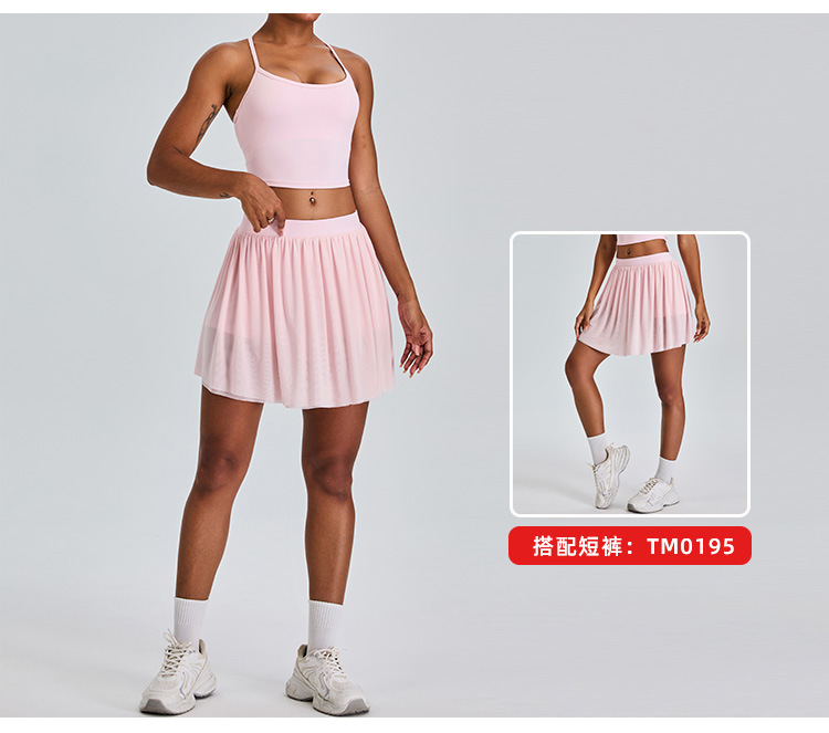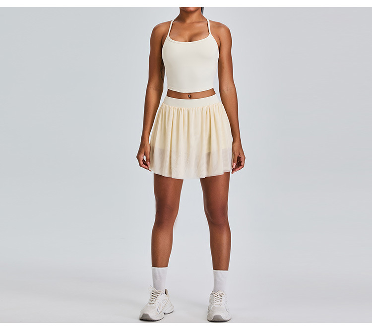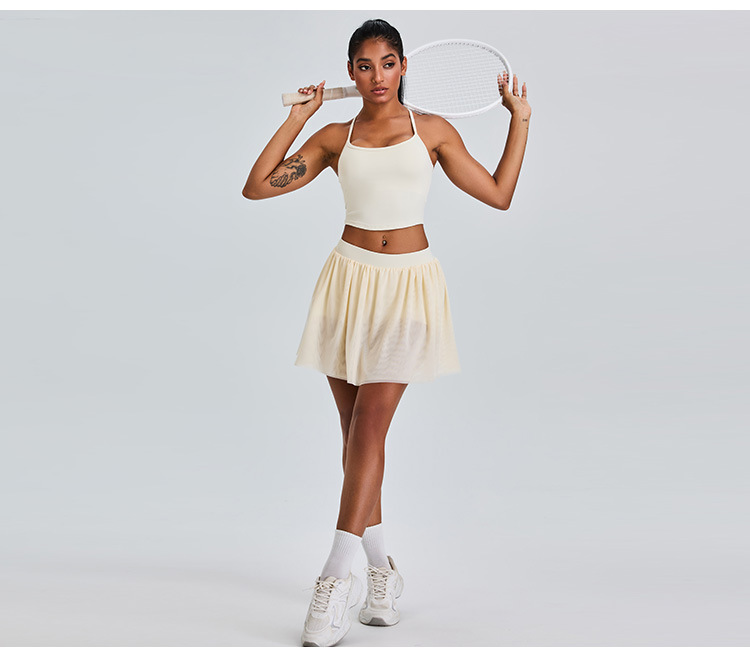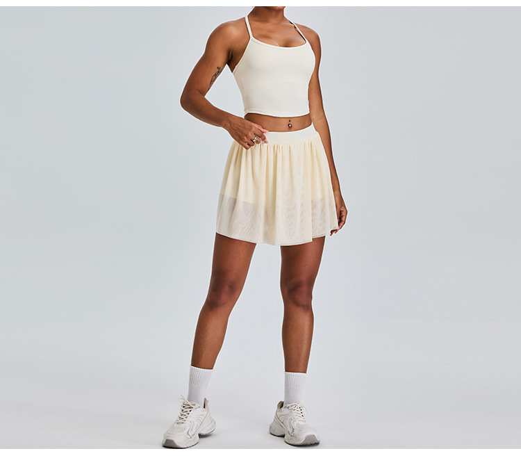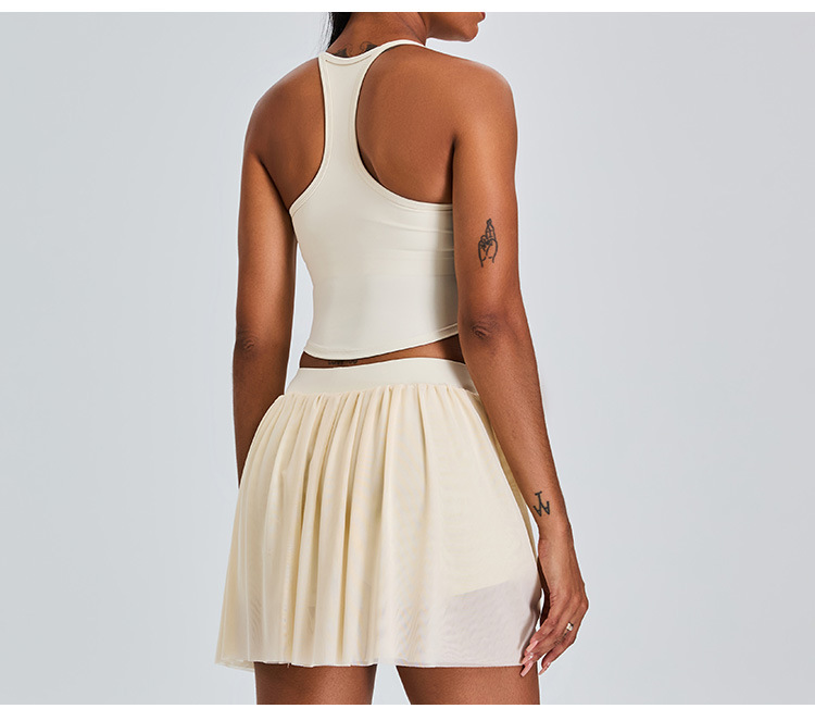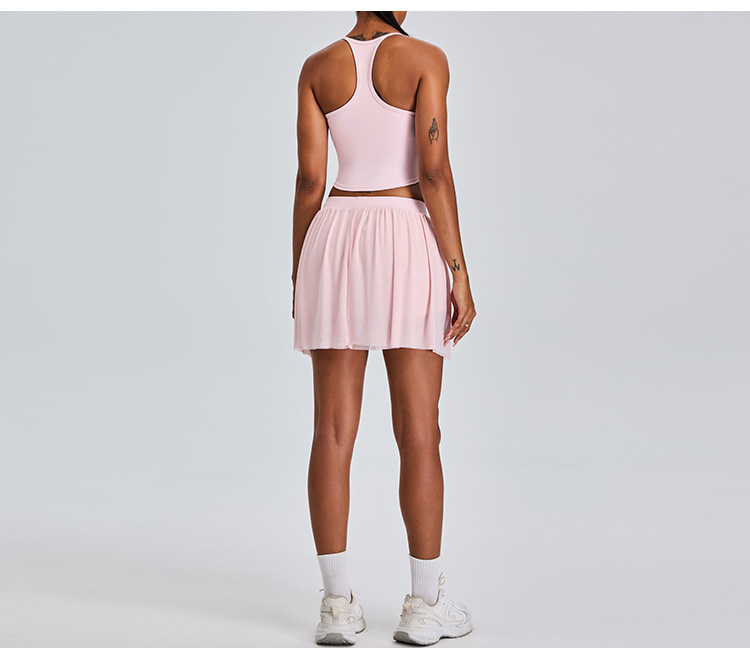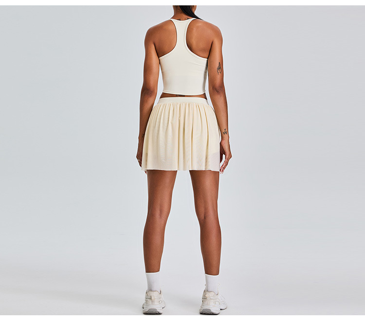 09/2024 New casual sports short skirt yoga suit women with lining mesh pleated tennis skirt fitness suit
