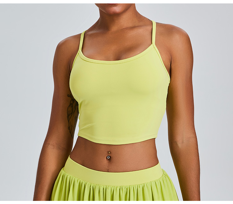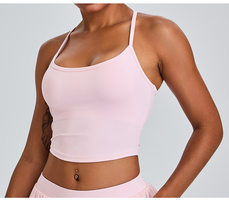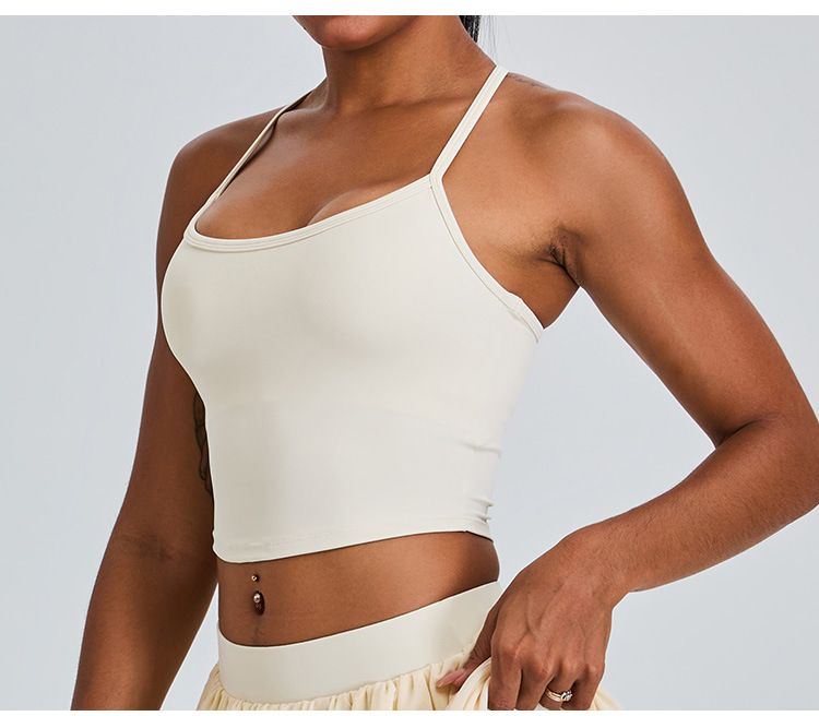 03/2025 Summer Yoga vest top Women with breast pad Beautiful back halter vest no underwire push-up bra
