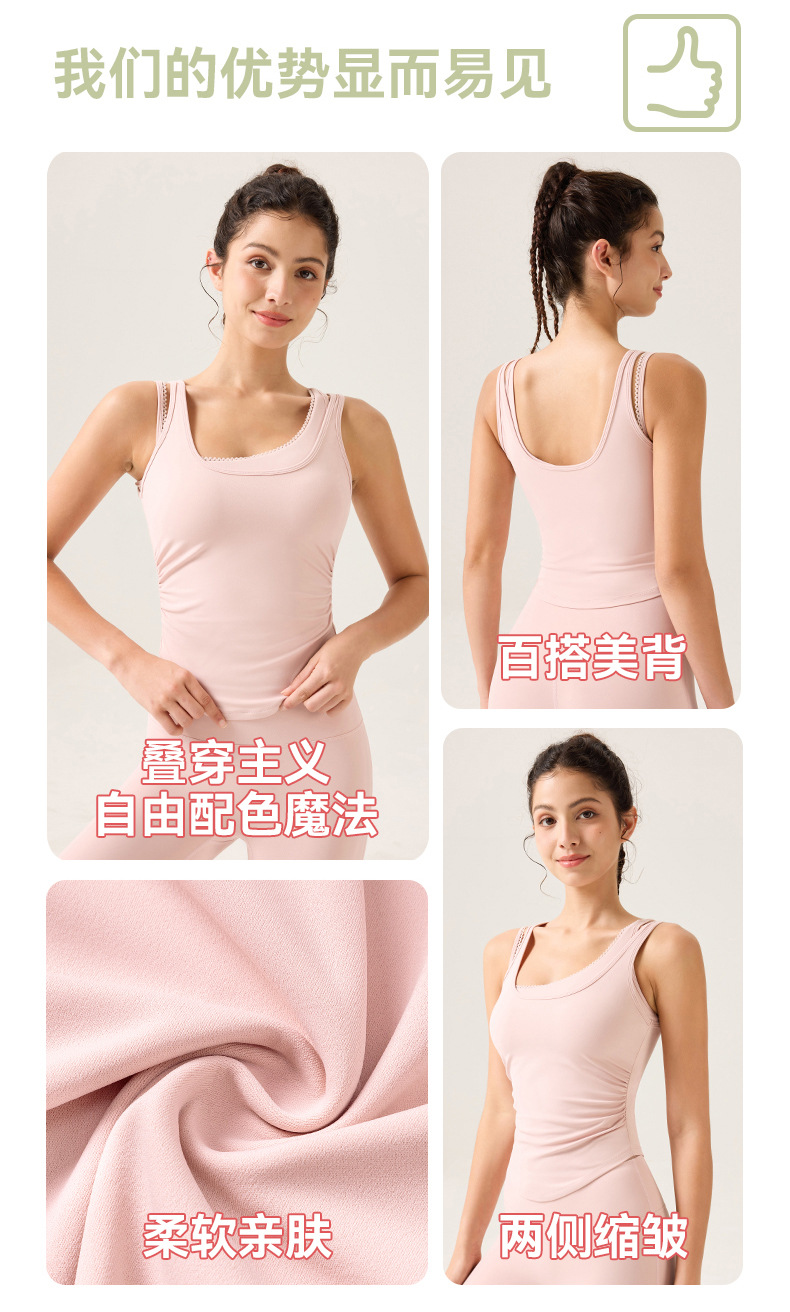 03/2025 Summer Yoga vest top Women with breast pad Beautiful back halter vest no underwire push-up bra
