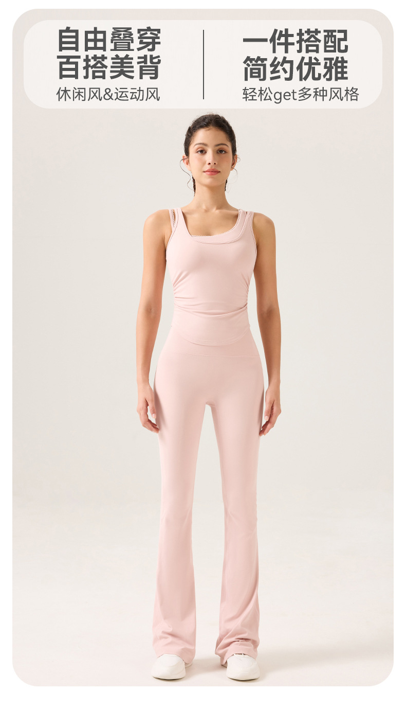 07/2025 Summer sleeveless bottoming sports vest with chest pads for inner wear and outer wear bra hip lift high waist fitness trousers women's suit