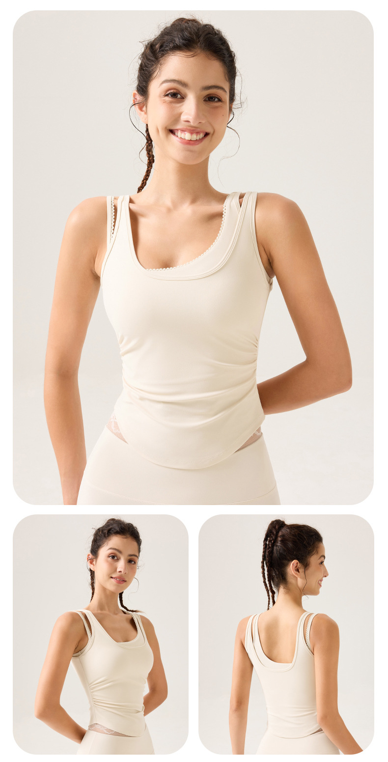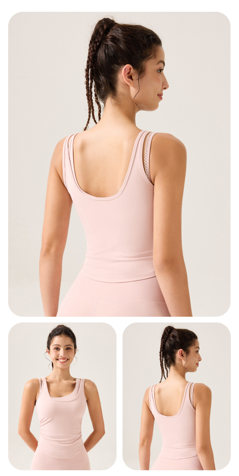 03/2025 Summer Yoga vest top Women with breast pad Beautiful back halter vest no underwire push-up bra