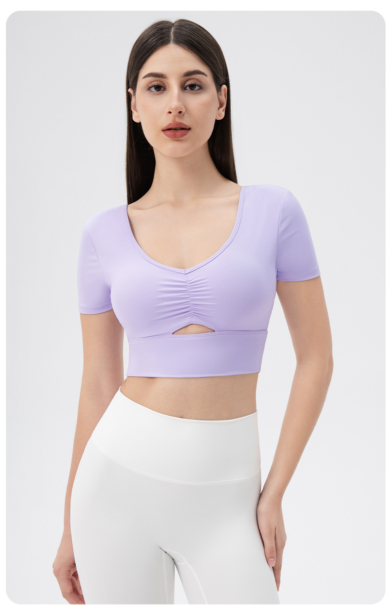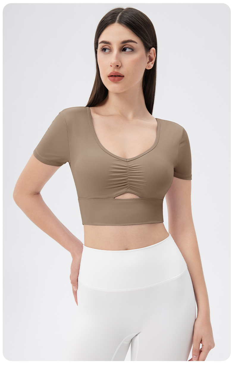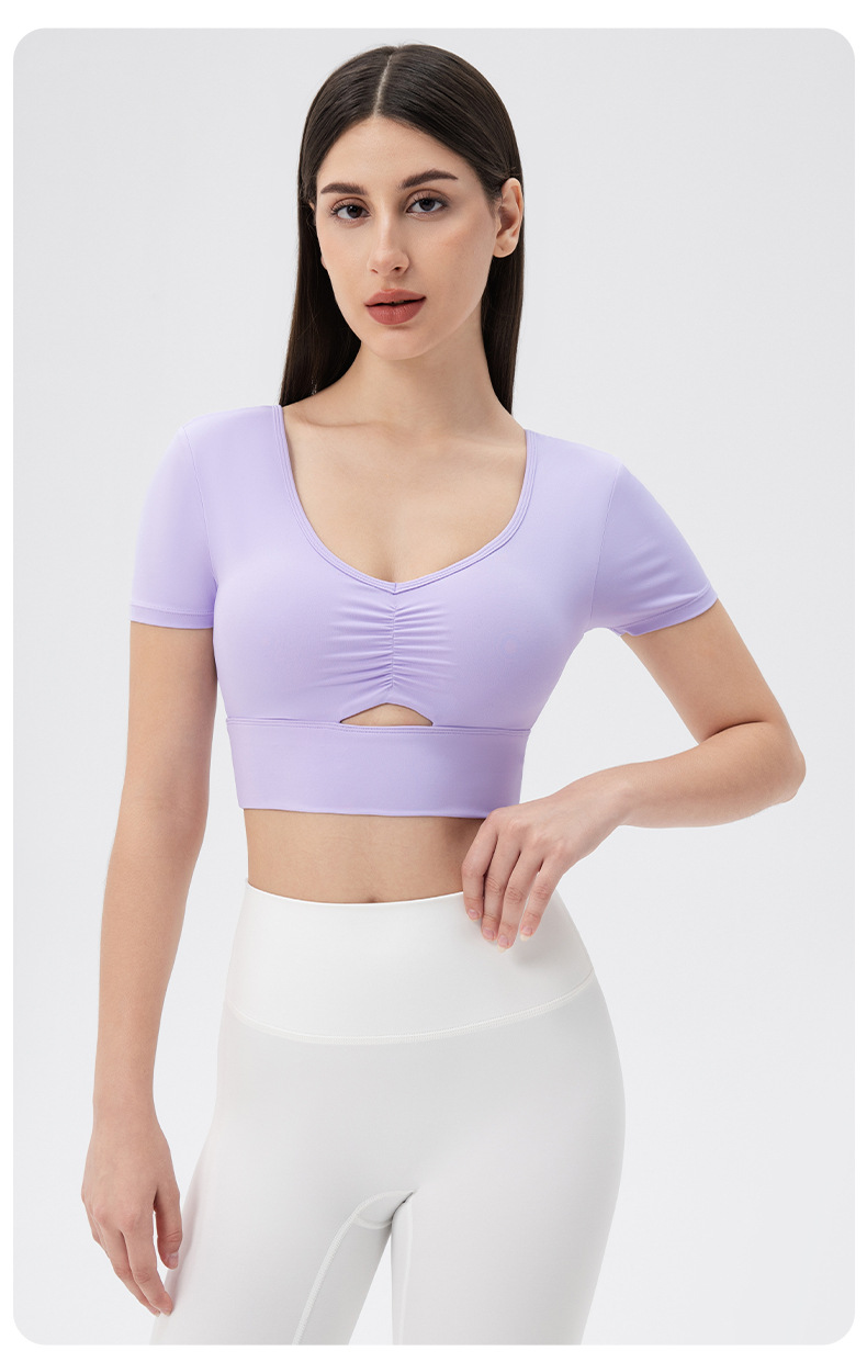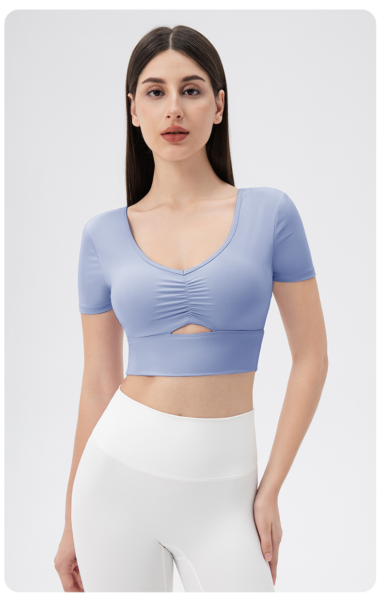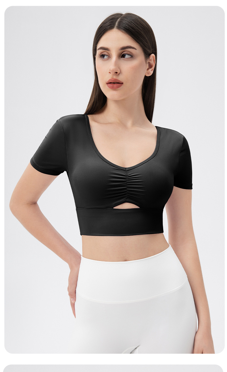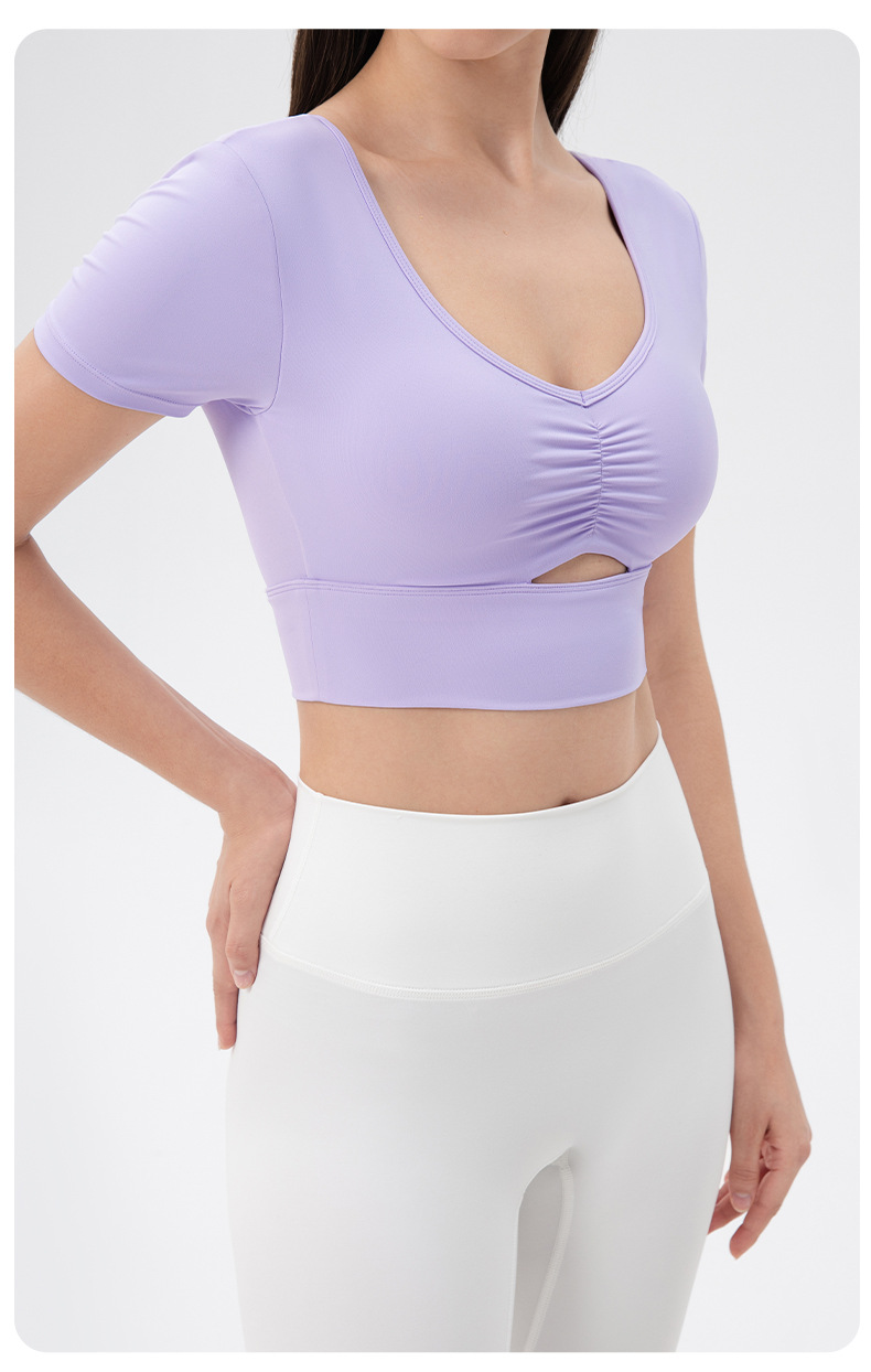 11/2024 Women's Yoga Clothes Short Sleeves with Chest Pads V-Neck Sexy Tight Sports T-Shirt Short Fitness Running Training Quick Dry Clothes