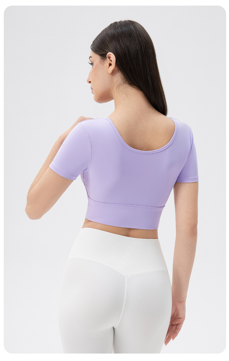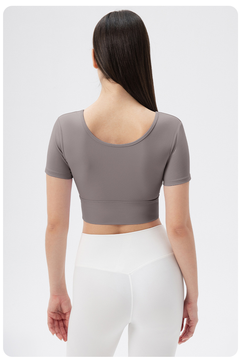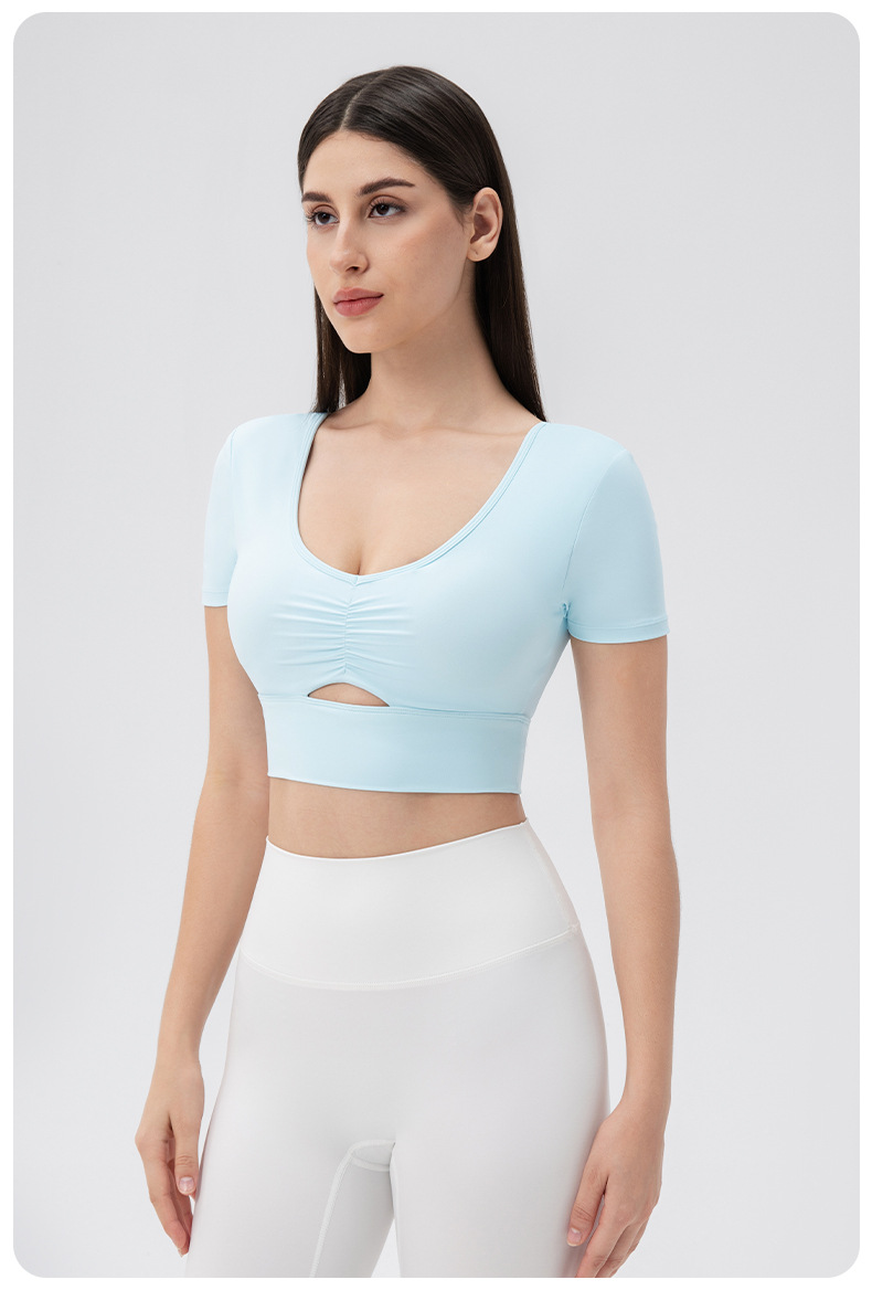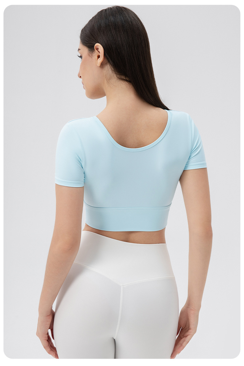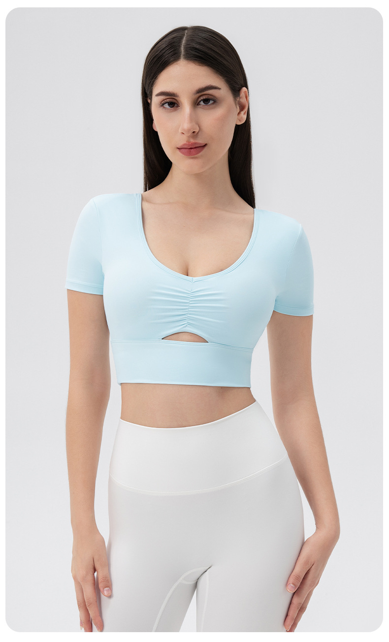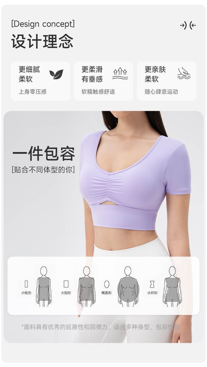 11/2024 Women's Yoga Clothes Short Sleeves with Chest Pads V-Neck Sexy Tight Sports T-Shirt Short Fitness Running Training Quick Dry Clothes