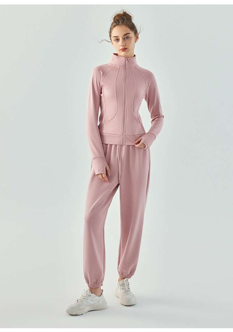 2023.08 Zipper style sportswear jacket women's stand-up collar autumn and winter slim fit running training yoga fitness clothing long-sleeved top