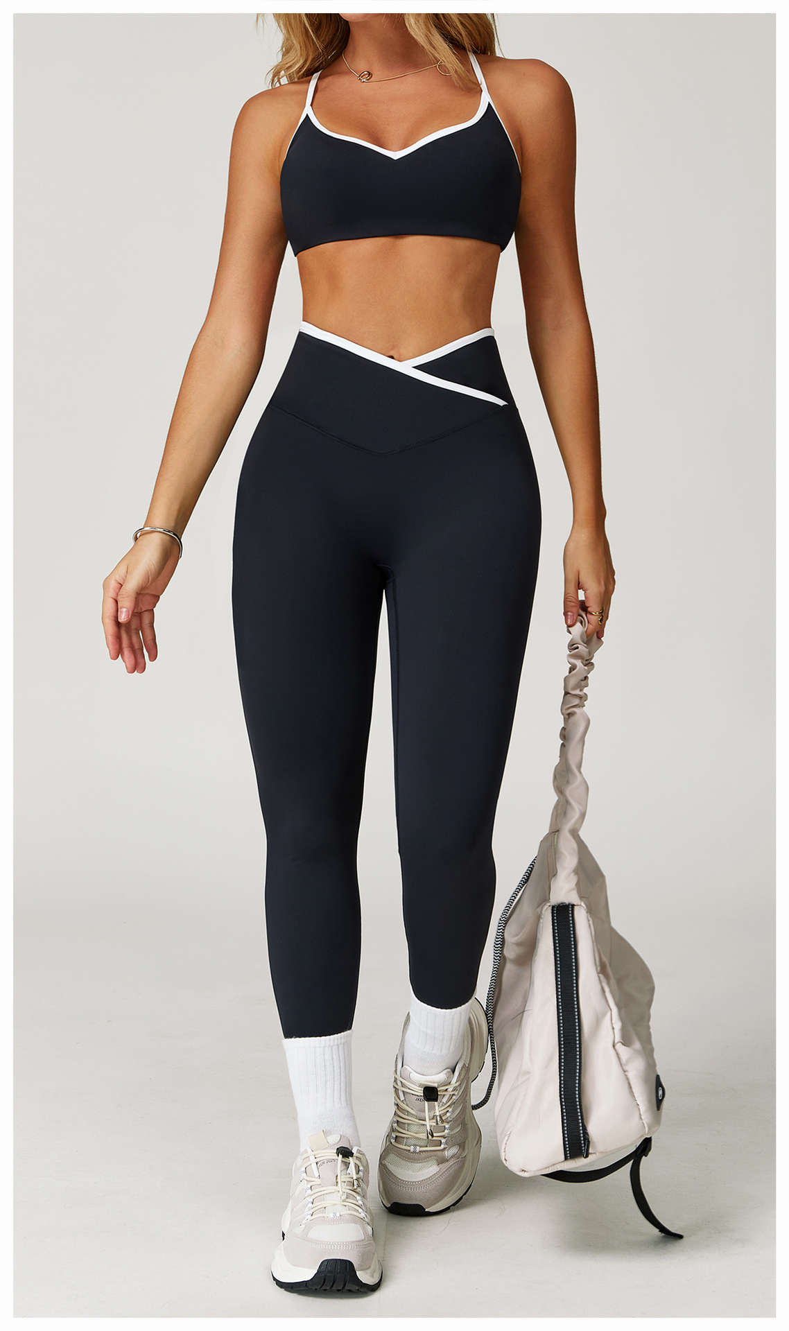 05/2025 Tight yoga pants, crossed high-waisted color-blocking tight pants, women's sports running fitness pants 9253