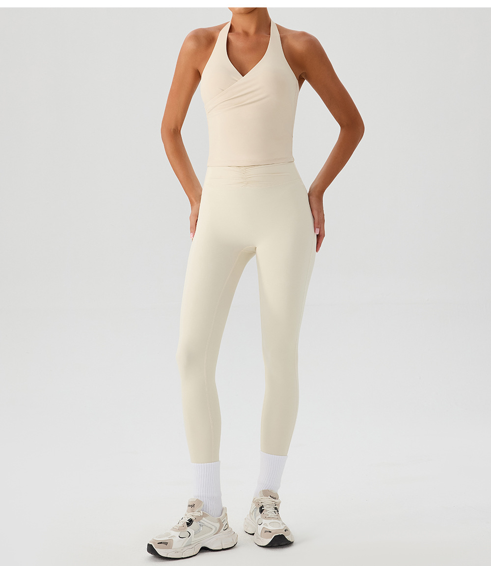 07/2025 Women's V-neck halter yoga top with gathered chest pads for a slimming and beautiful back