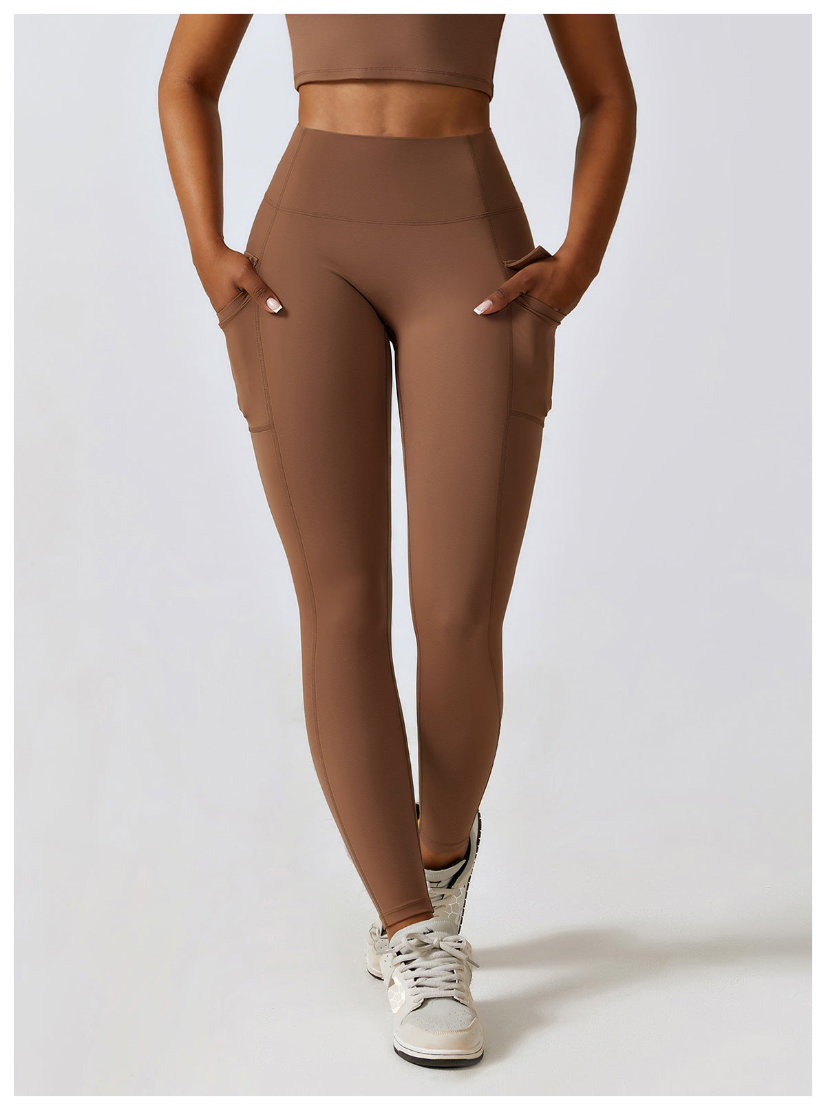 2023.09 Naked quick-drying yoga pants, high-waisted butt-lifting fitness pants, cargo pockets, cycling and running sports pants 8296