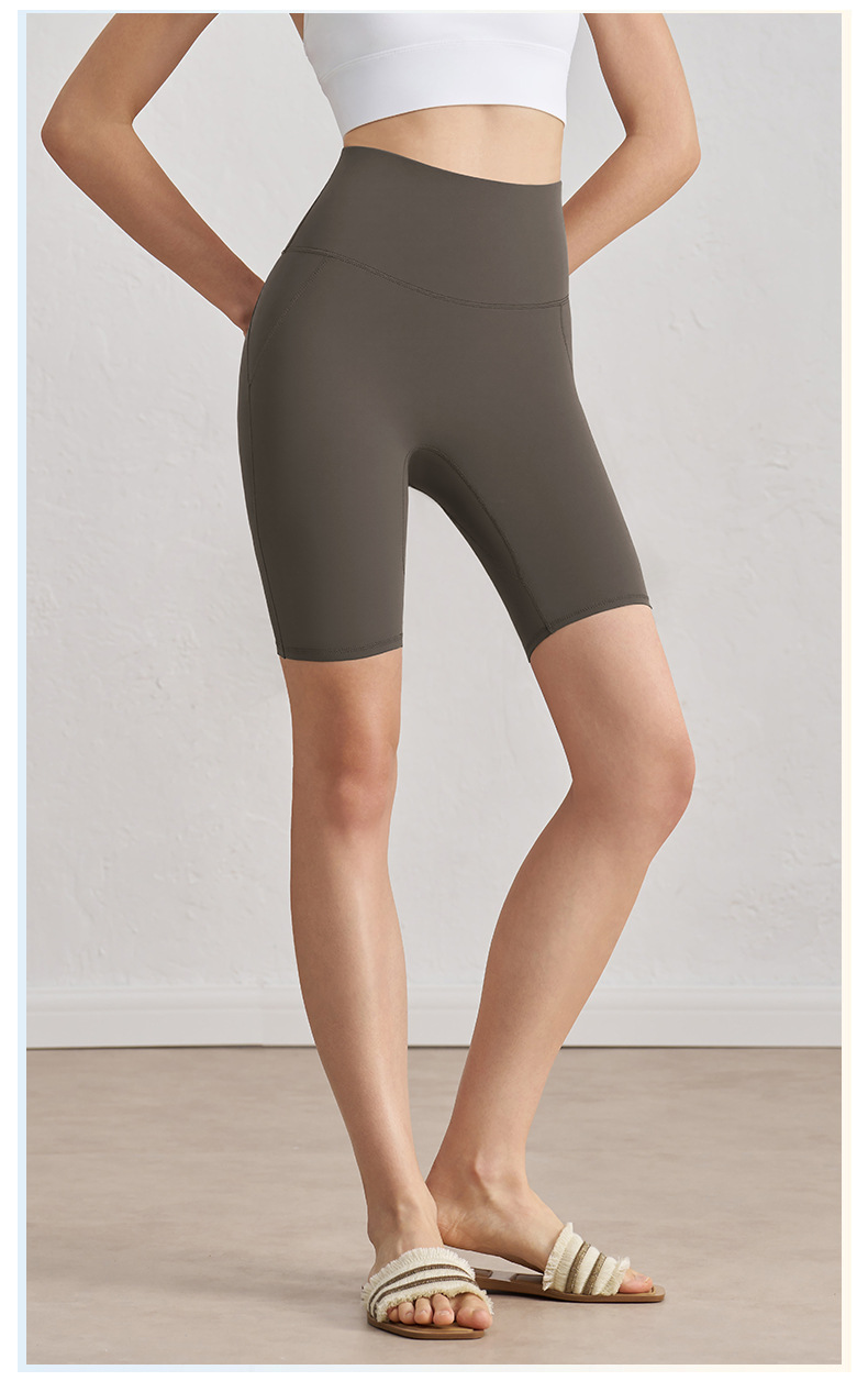 08/2024 Cross high waist yoga shorts tight nude peach hip sports shorts women's outdoor fitness pants 8843
