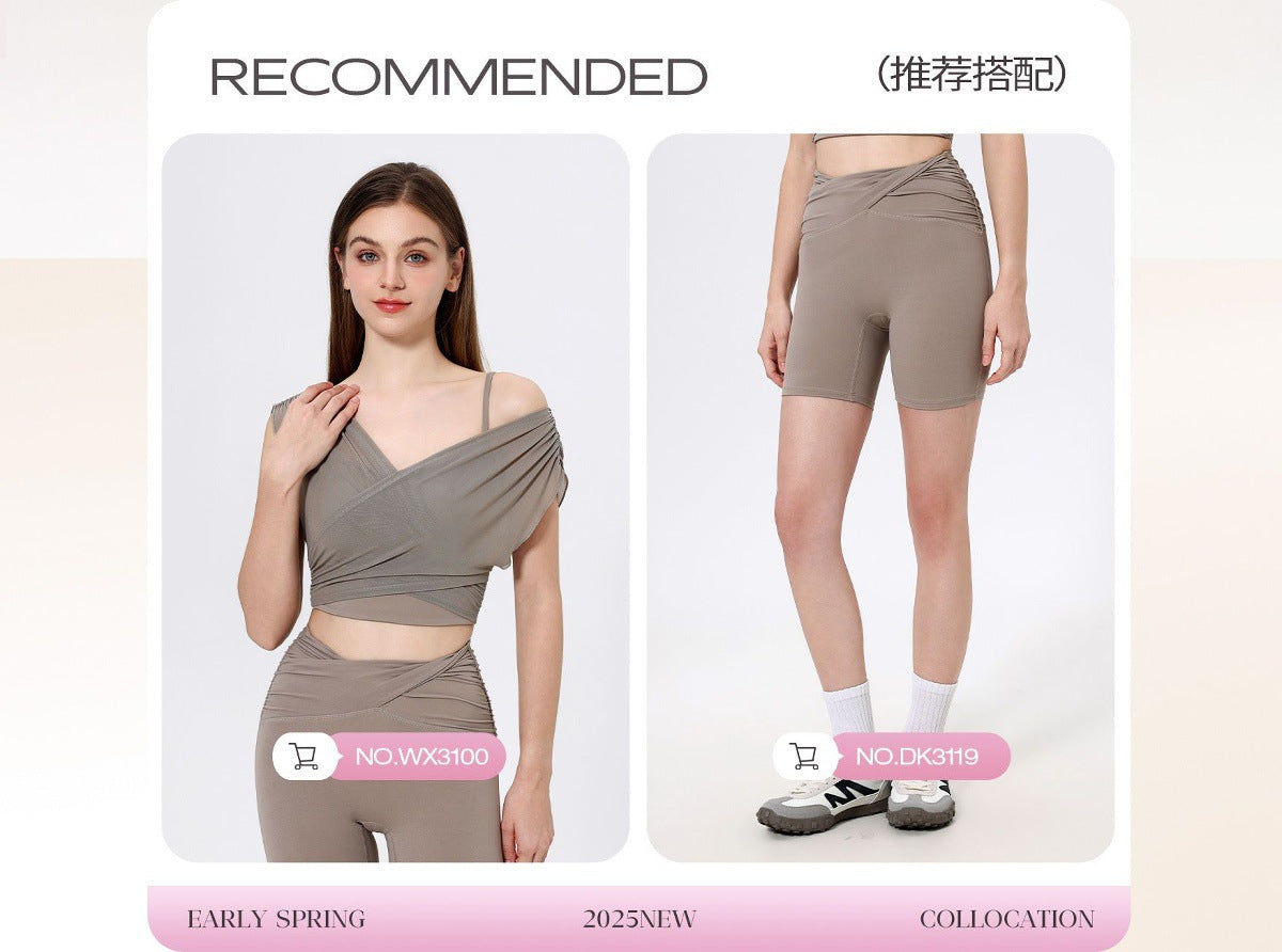08/2024 Cross high waist yoga shorts tight nude peach hip sports shorts women's outdoor fitness pants 8843