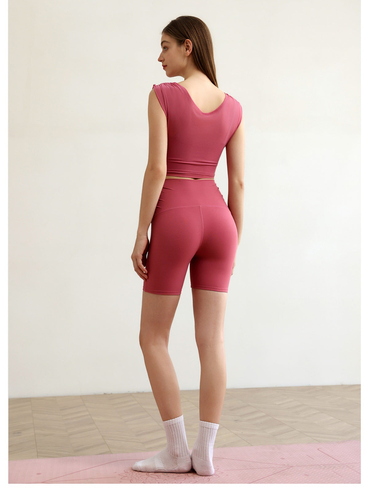 01/2025 High-waisted tight-fitting three-part yoga pants women's hip peach sports shorts quick-drying outdoor fitness pants