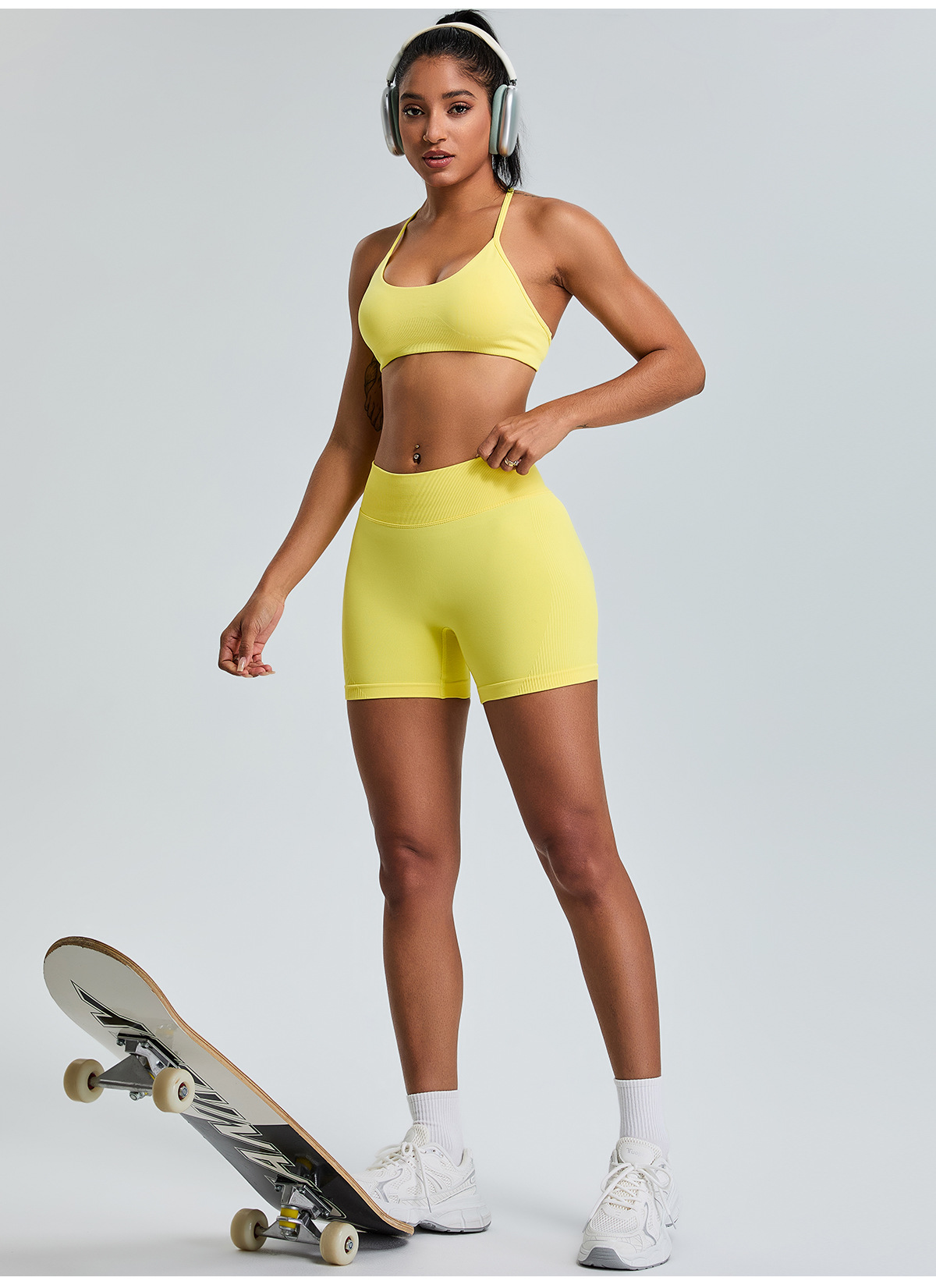 2024 new colors 2022 spring and summer new high waist shorts nude T-line yoga pants women's European and American peach hip lift three-point fitness pants