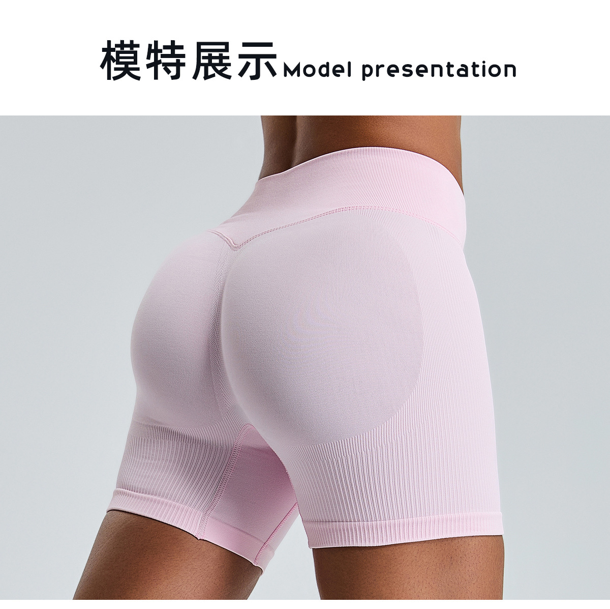 01/2025 Seamless breathable quick dry yoga shorts Tight exercise yoga pants Women's high-waisted peach three-point fitness pants