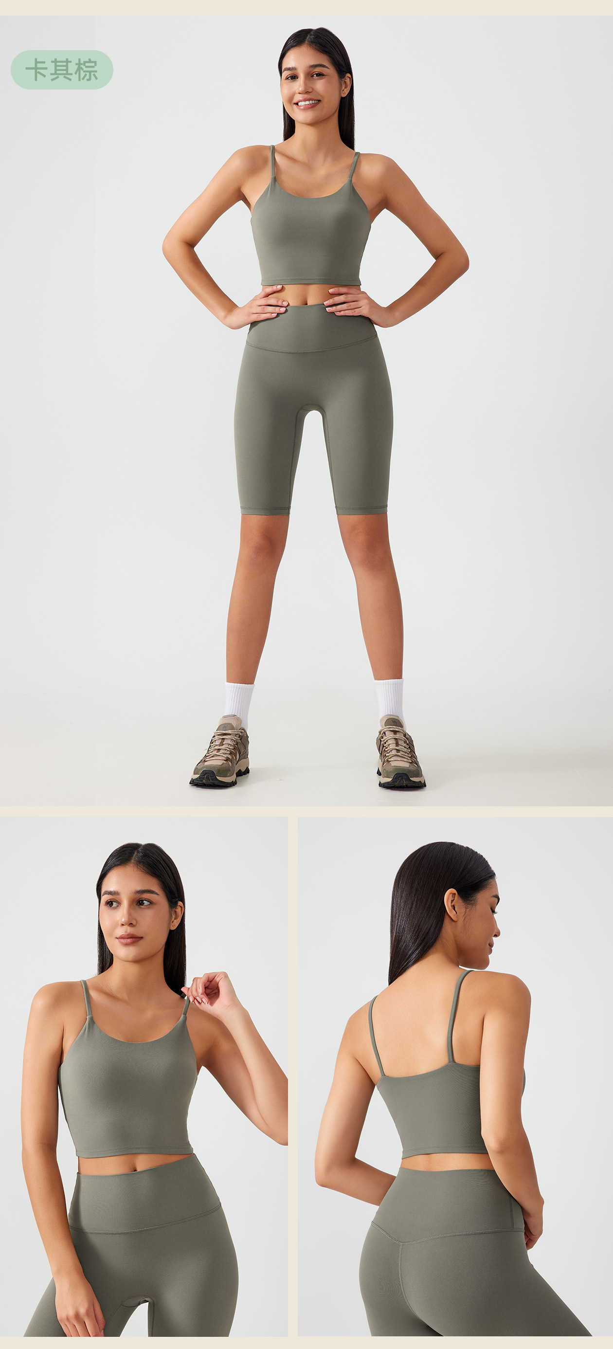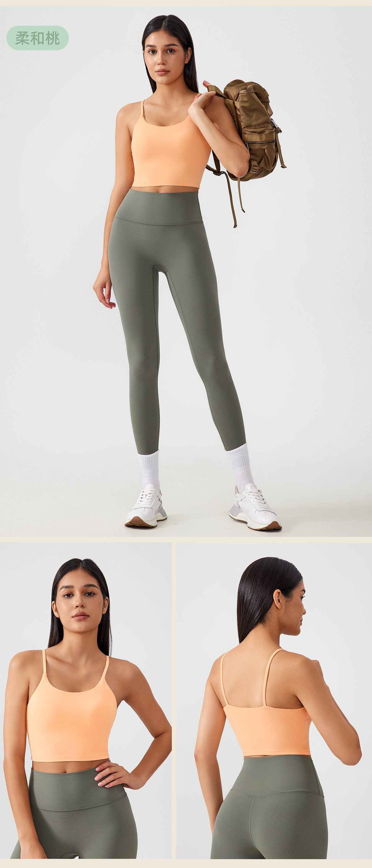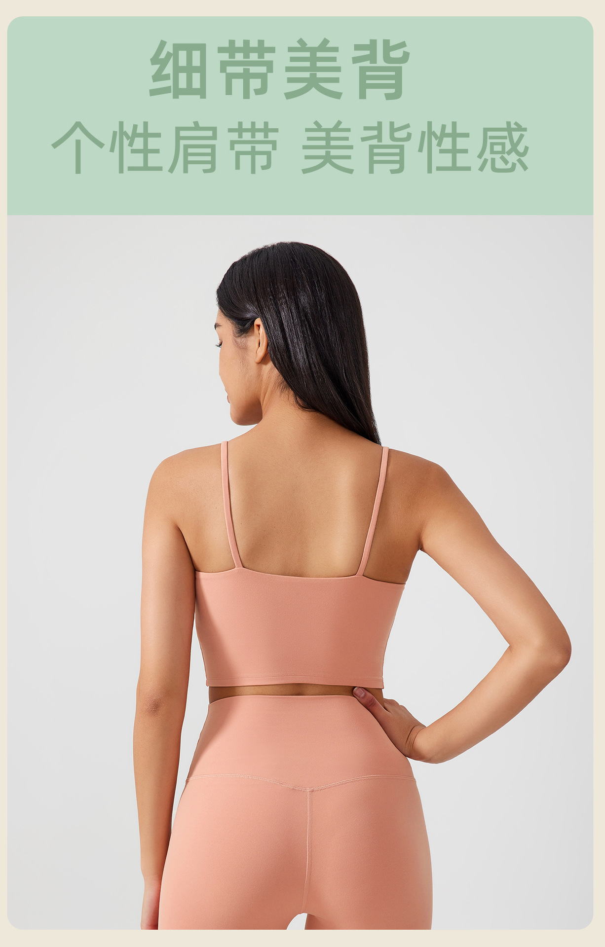 2022 new triangle beauty back fitness sports bra thin shoulder straps gathered nude yoga bra