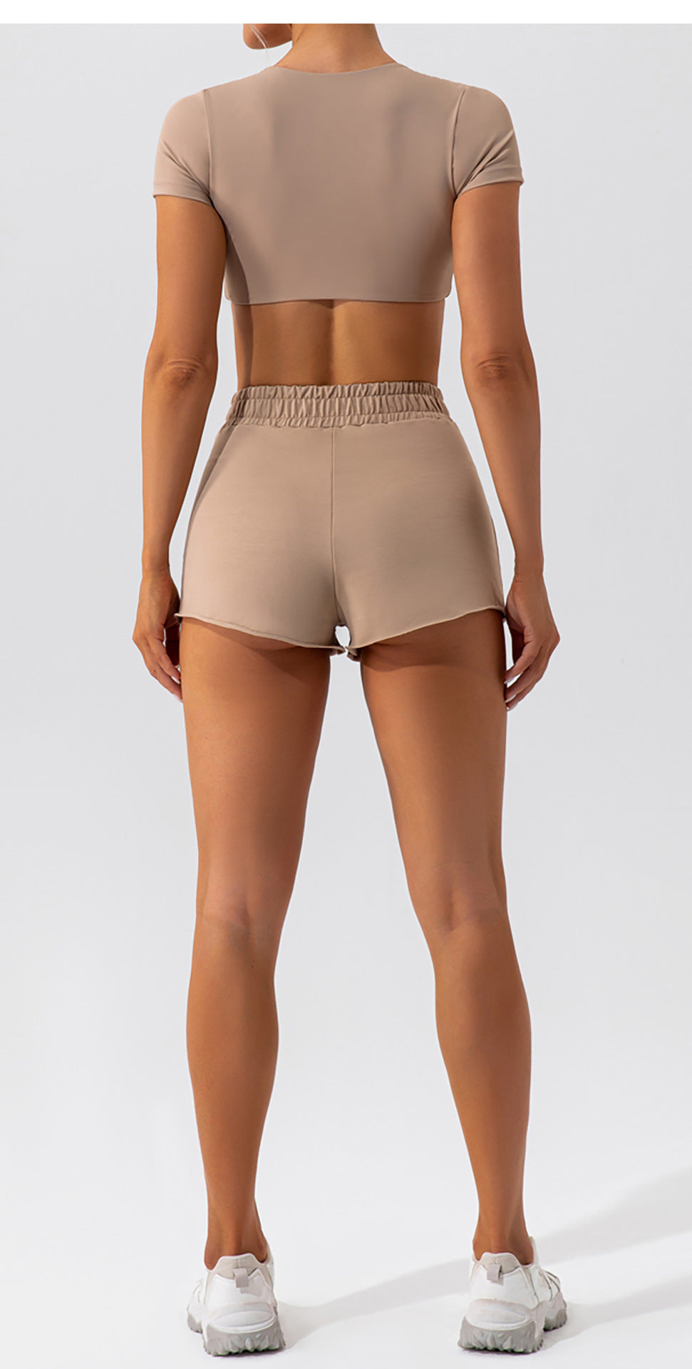 08/2024 Cross high waist yoga shorts tight nude peach hip sports shorts women's outdoor fitness pants 8843