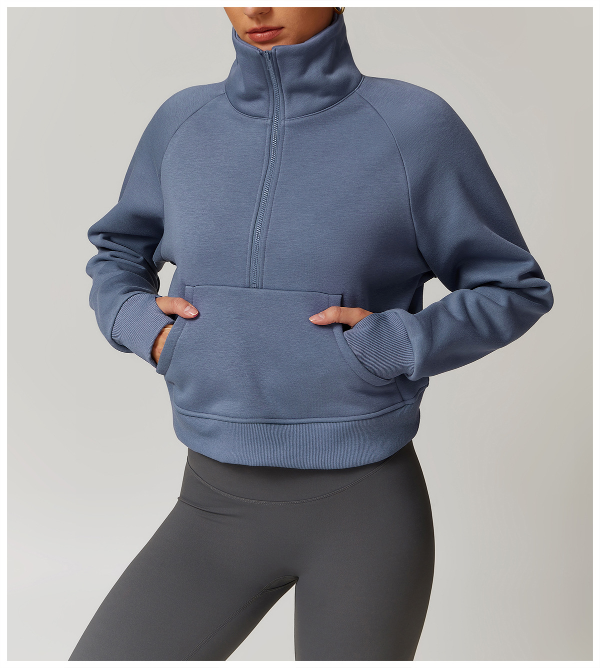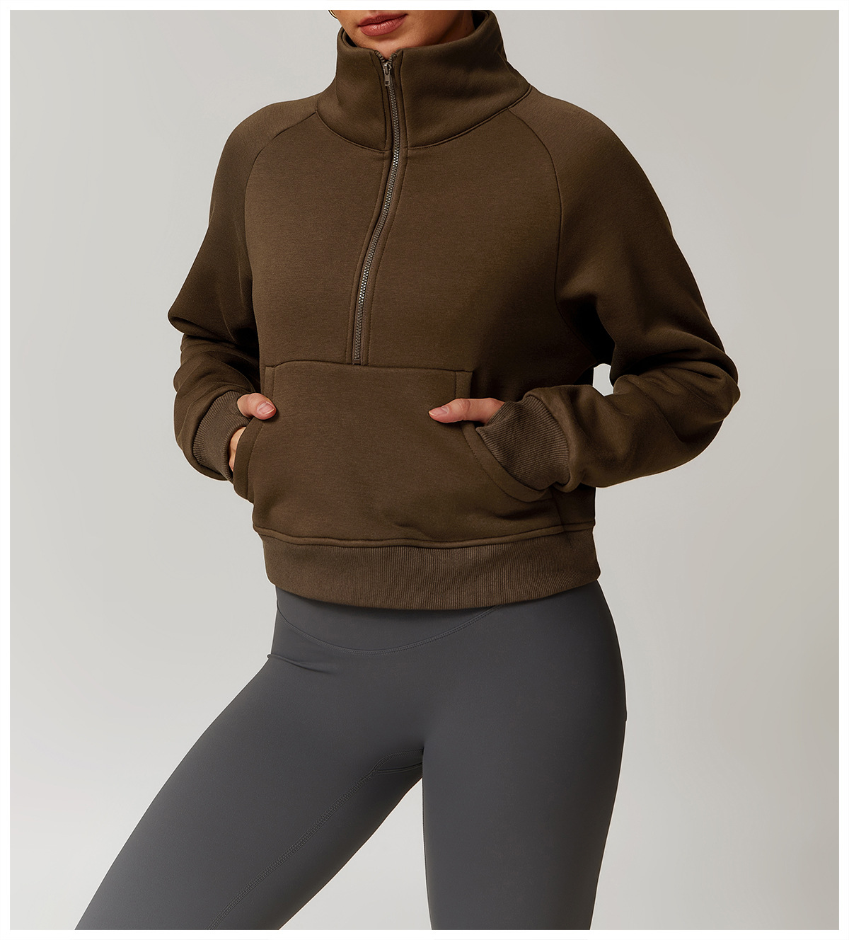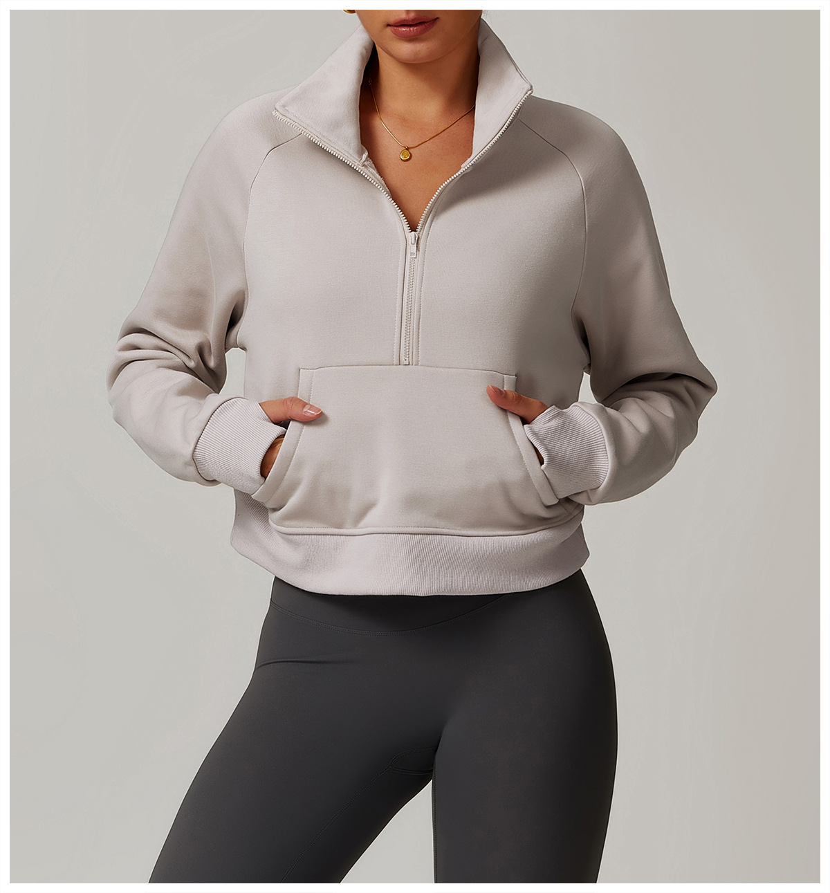 09/2024 Autumn and winter fleece loose sweater women's lambskin thick warm jacket polar fleece half zipper top 8917