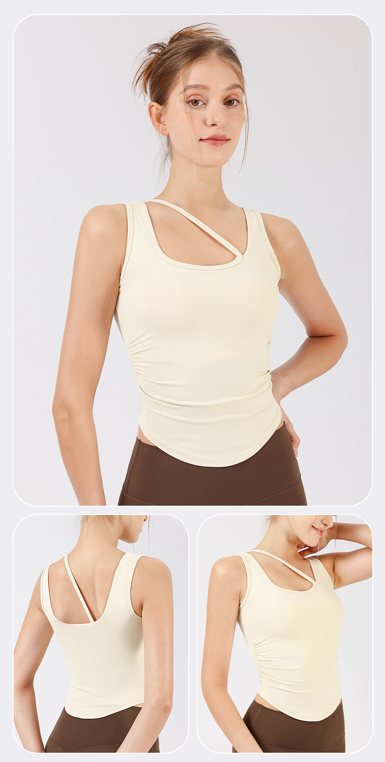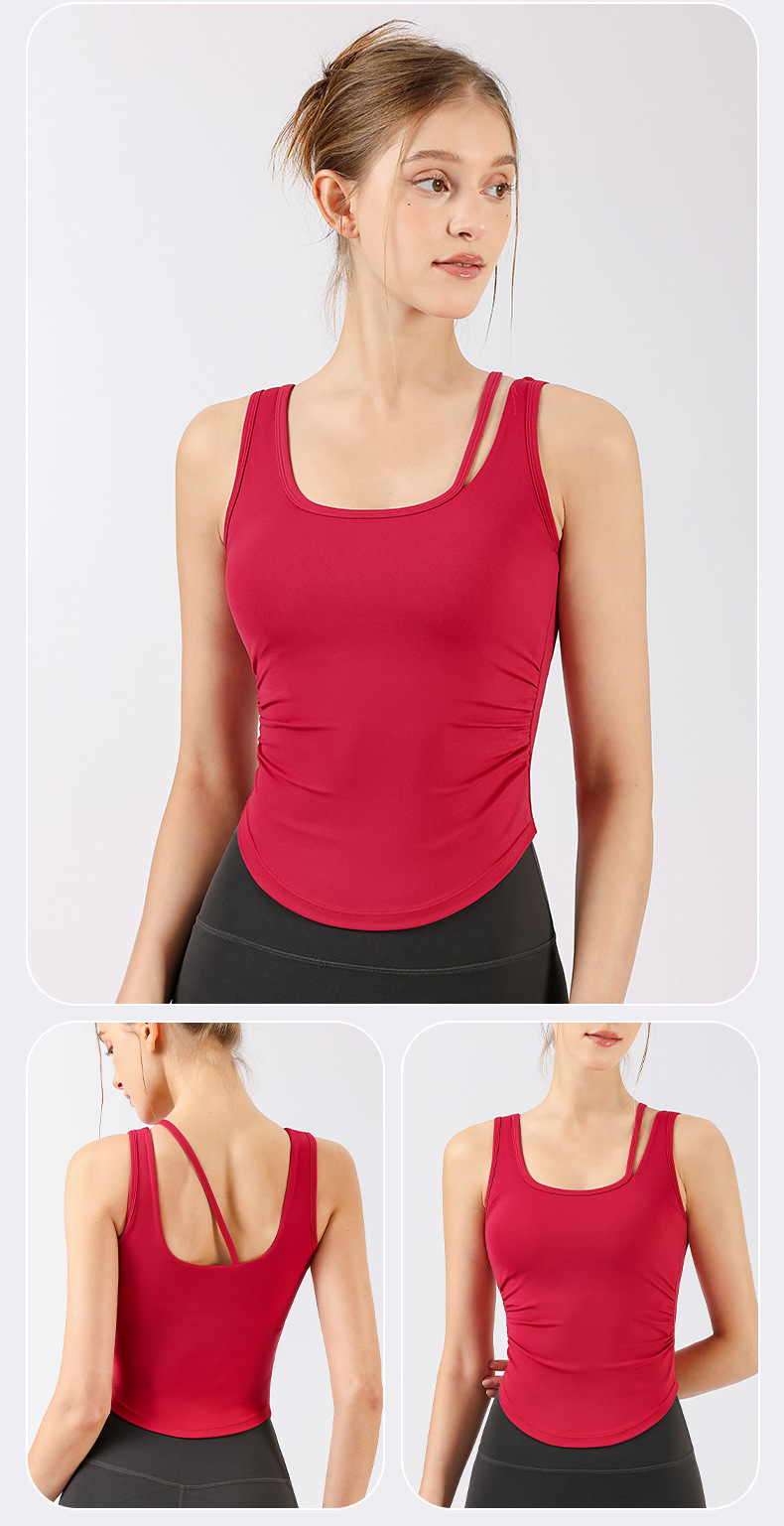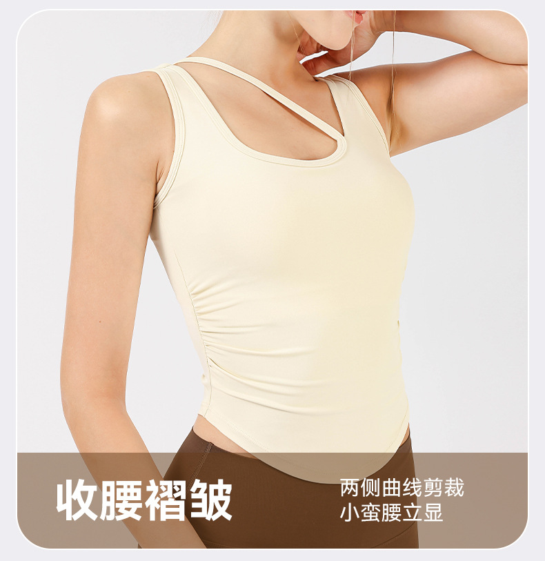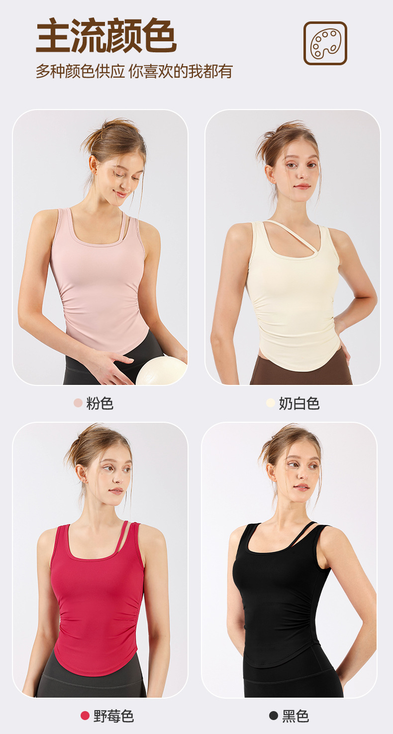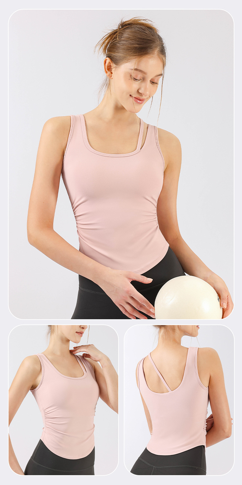 10/2024 New U-shaped beautiful back yoga vest slimming and slimming to cover the side breasts yoga top gathered fixed cup fitness clothes