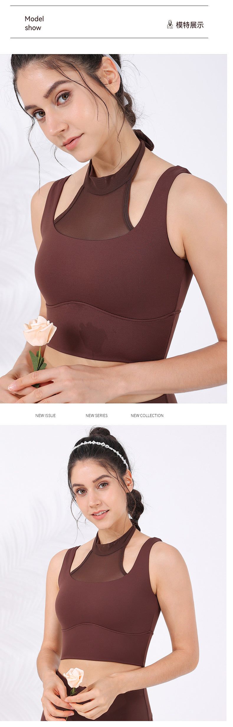 2023.09 New anti-light mesh neck-tie U-shaped beautiful back sports bra with widened sides to cover the side breasts running sports bra