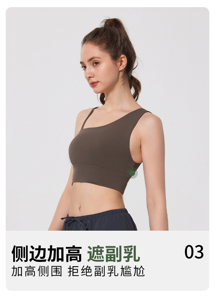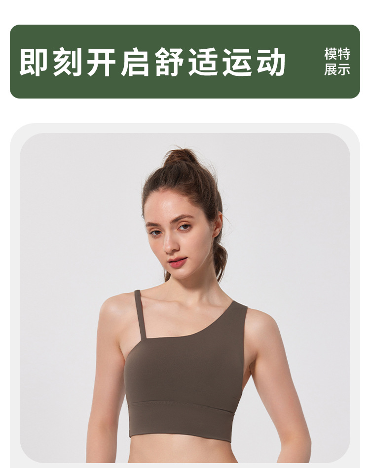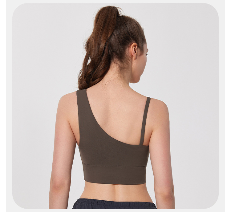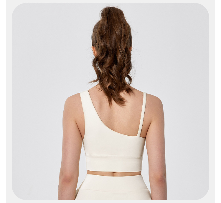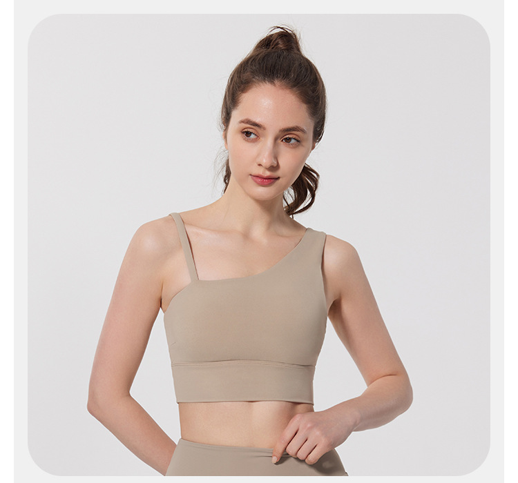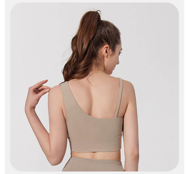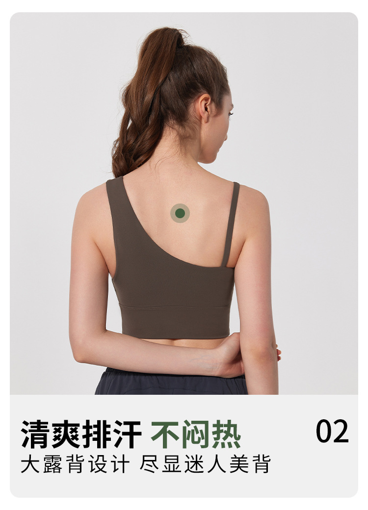 08/2024 Autumn and winter antibacterial nude sports bra beautiful back yoga irregular strap vest outer wear training yoga fitness clothes