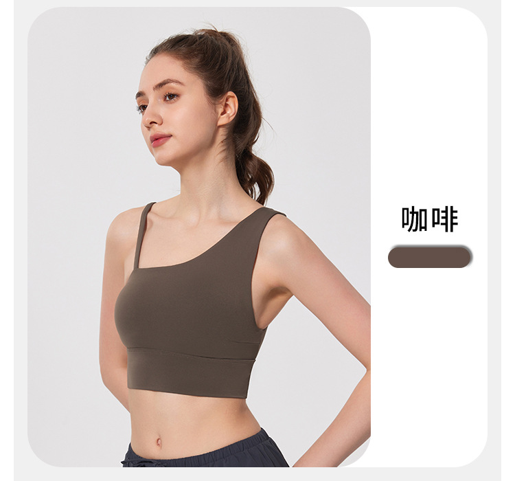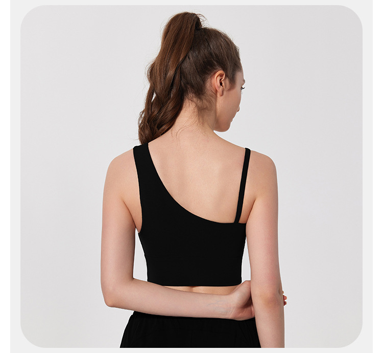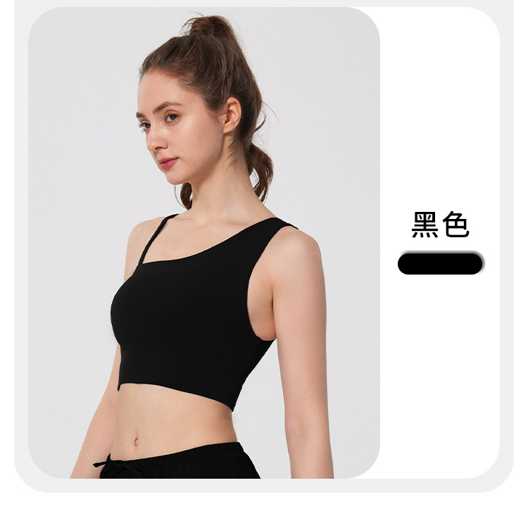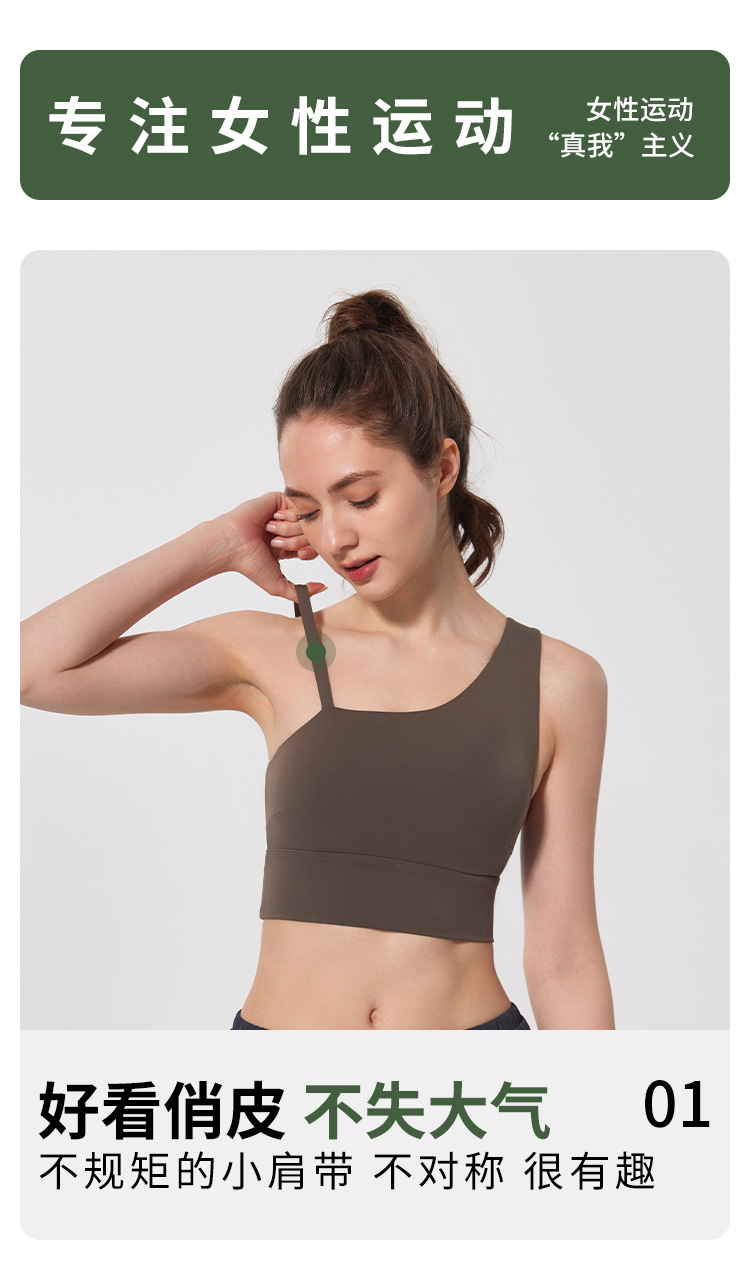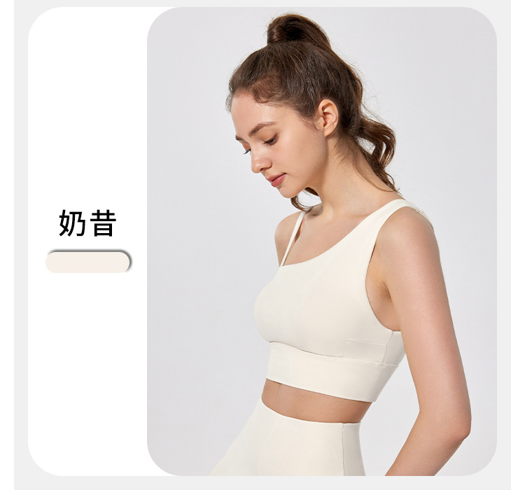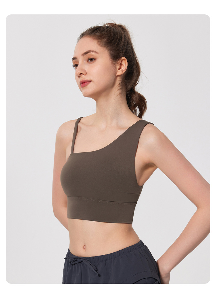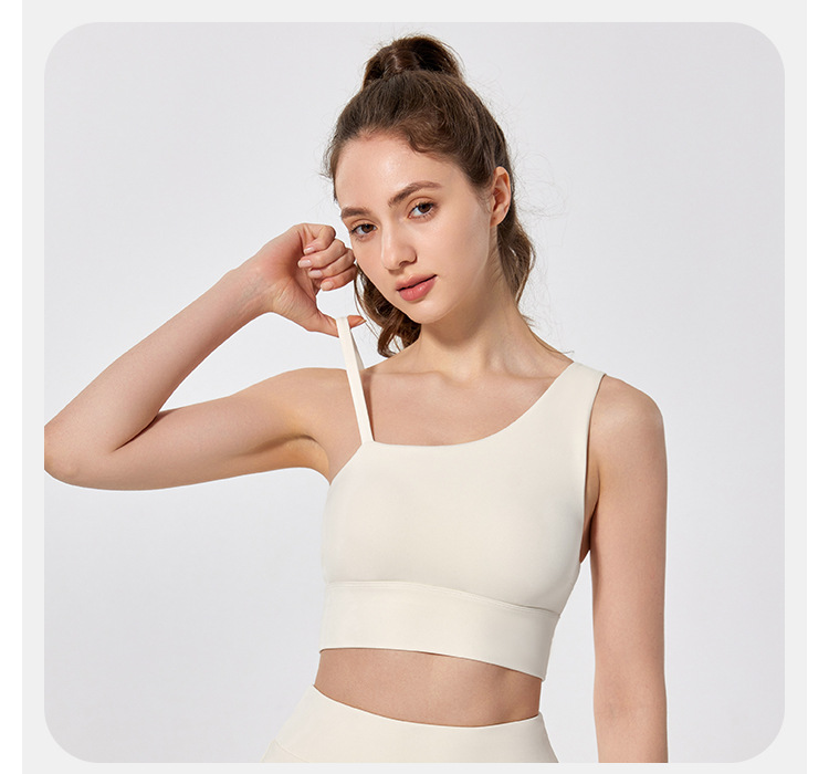 08/2024 Autumn and winter antibacterial nude sports bra beautiful back yoga irregular strap vest outer wear training yoga fitness clothes