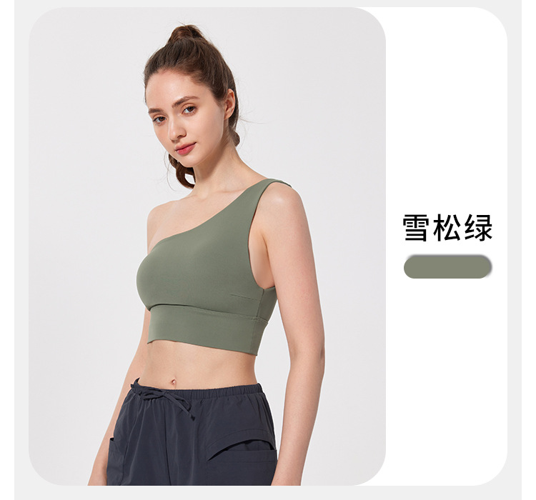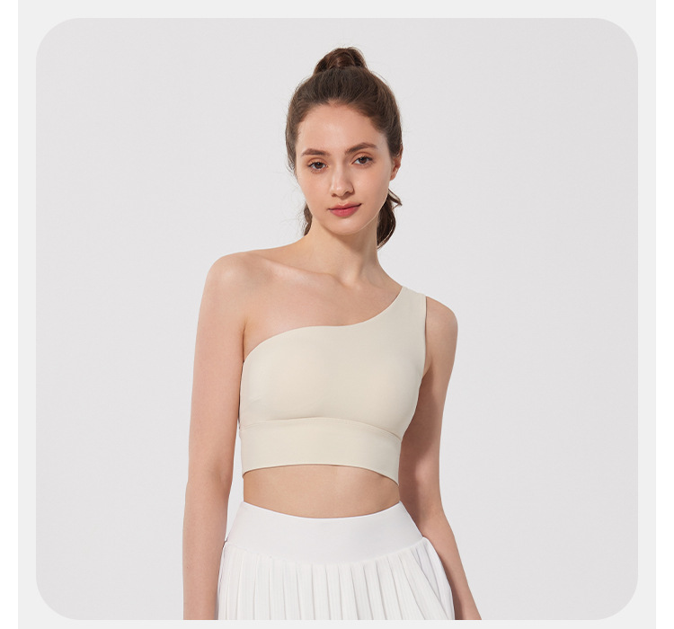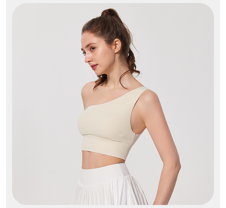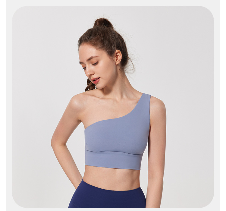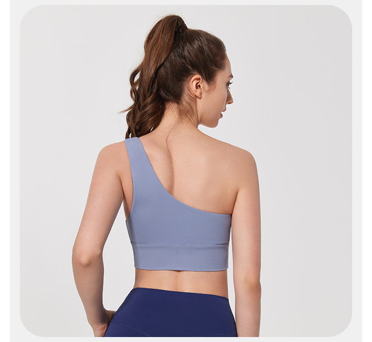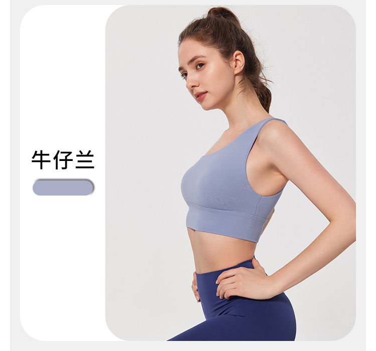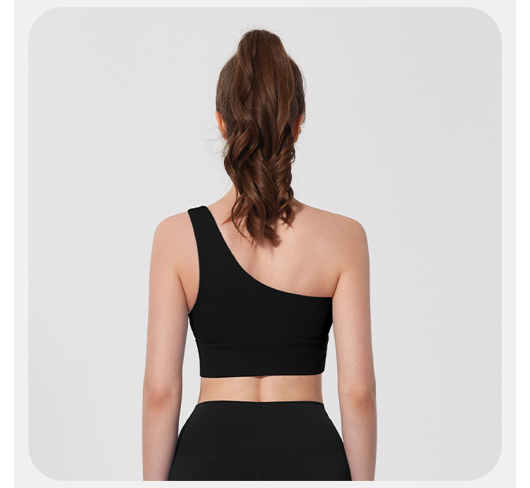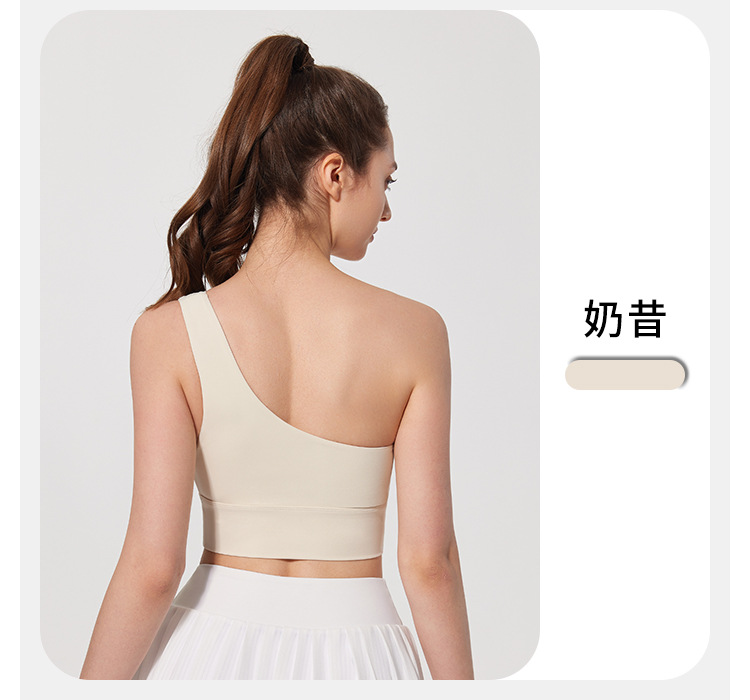 09/2024 Oblique one-shoulder shockproof yoga bra cloud-feeling beautiful back sports underwear irregular shoulder strap running fitness vest top BWX6425-2