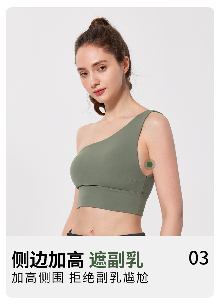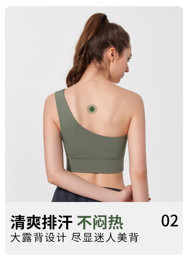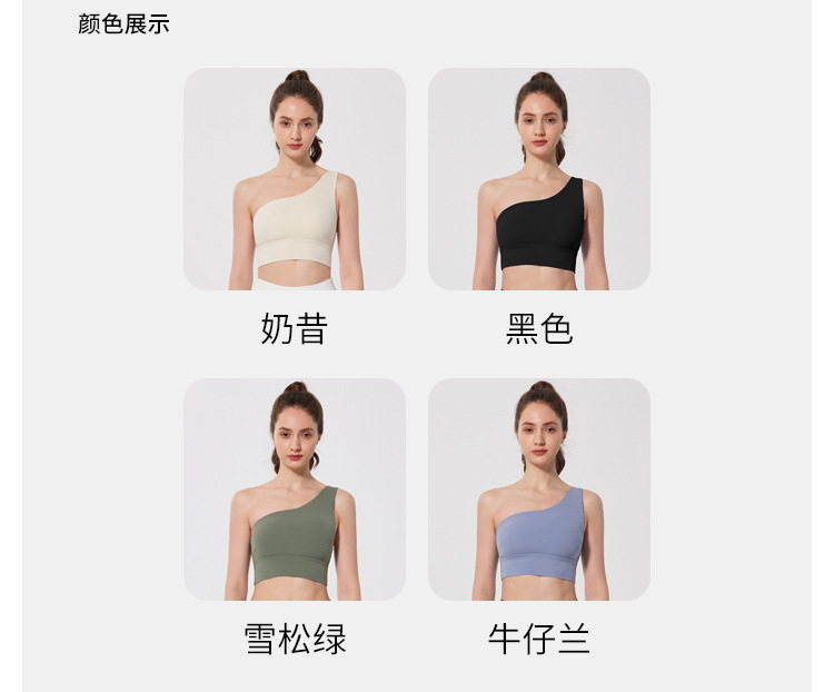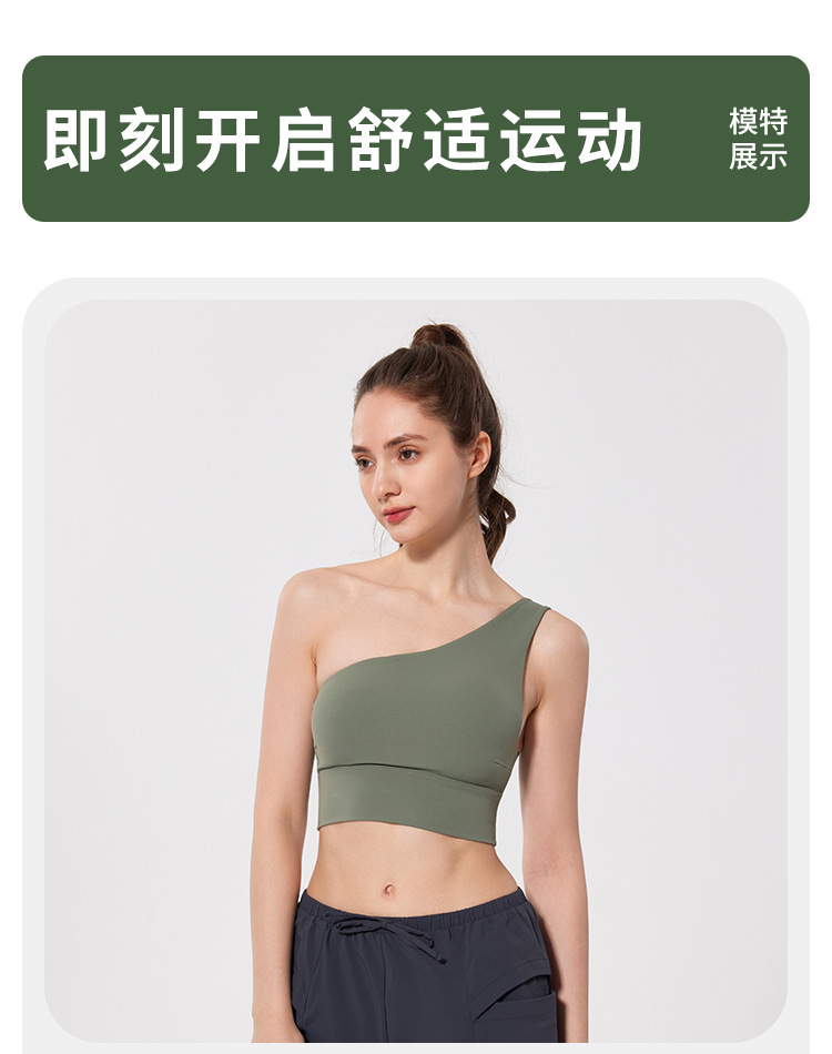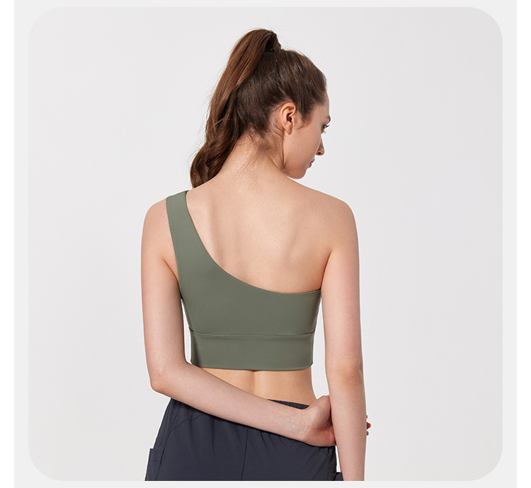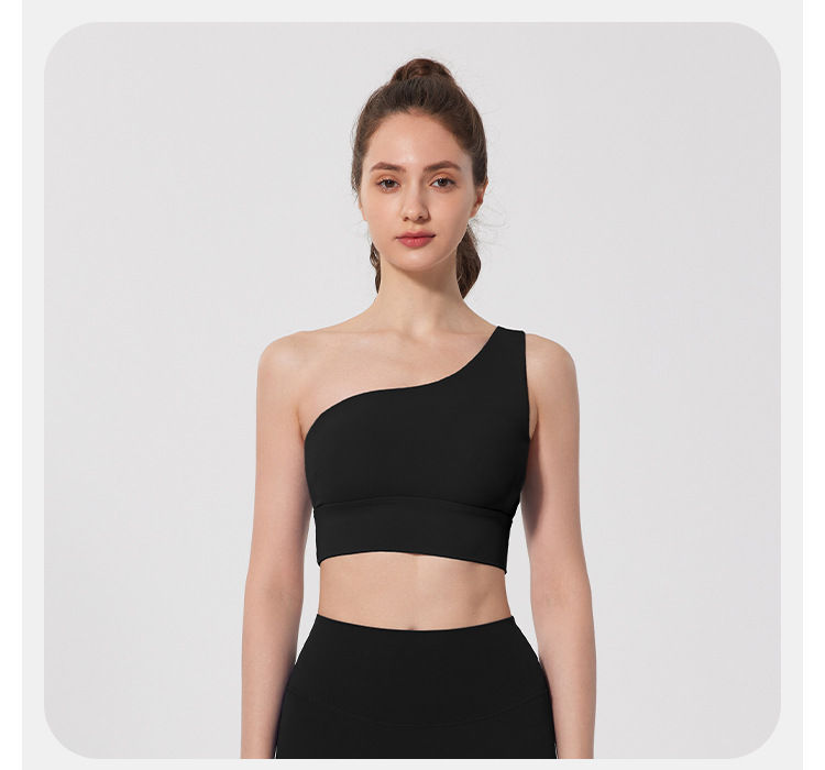 09/2024 Oblique one-shoulder shockproof yoga bra cloud-feeling beautiful back sports underwear irregular shoulder strap running fitness vest top BWX6425-2