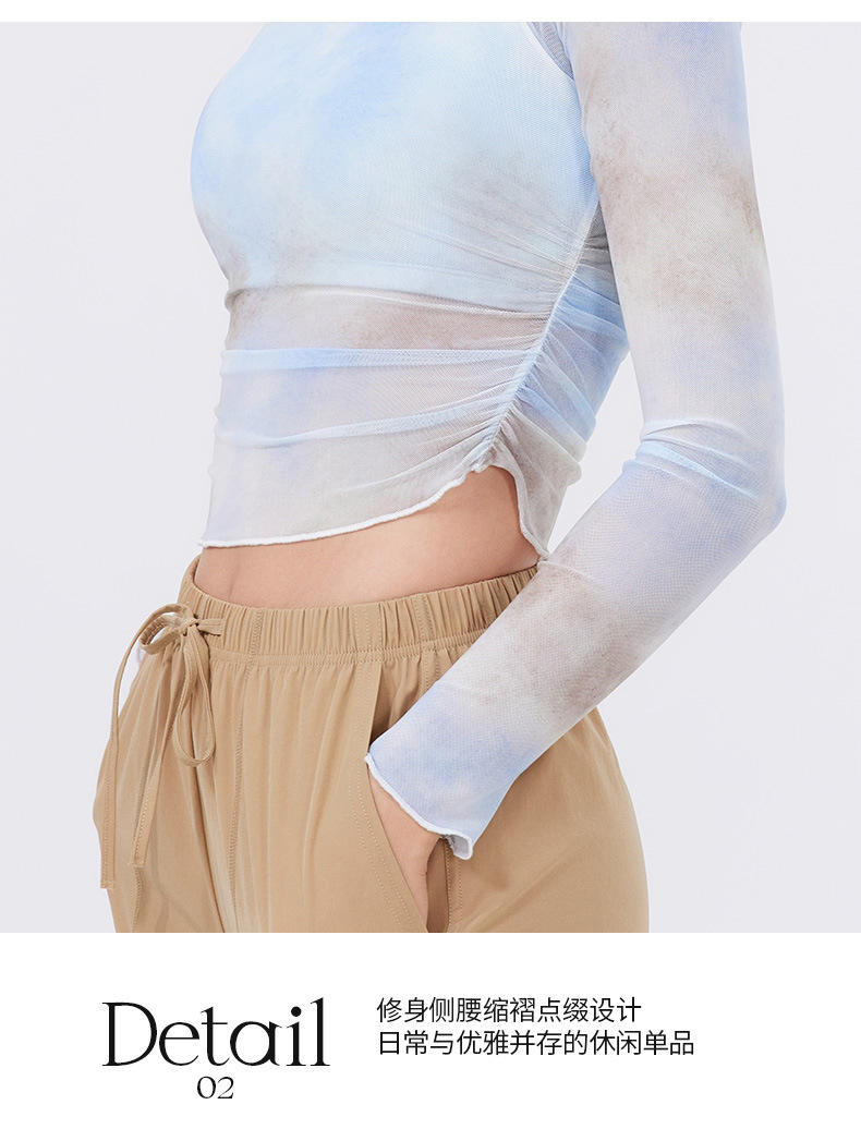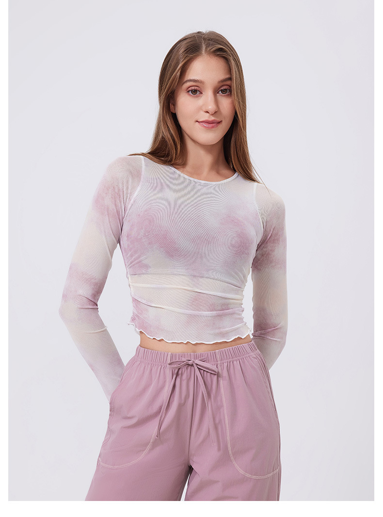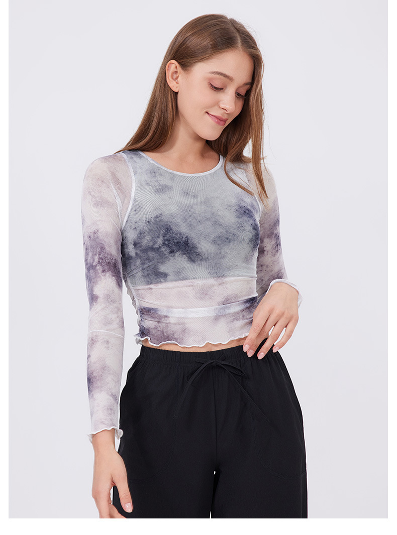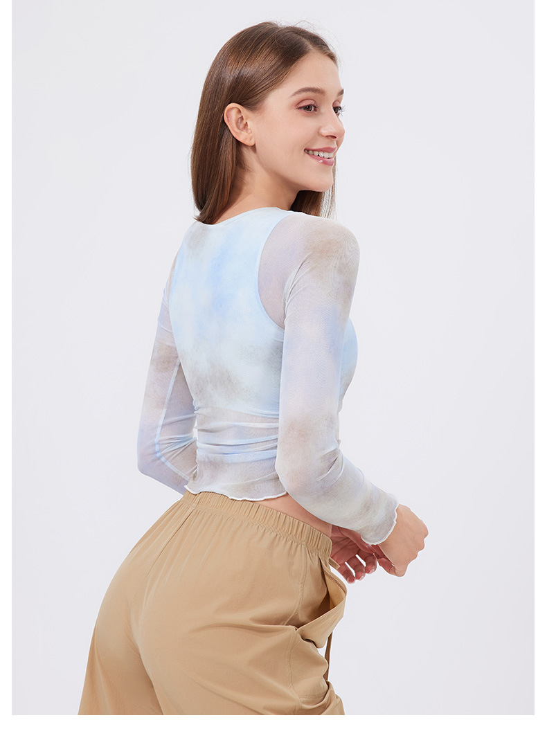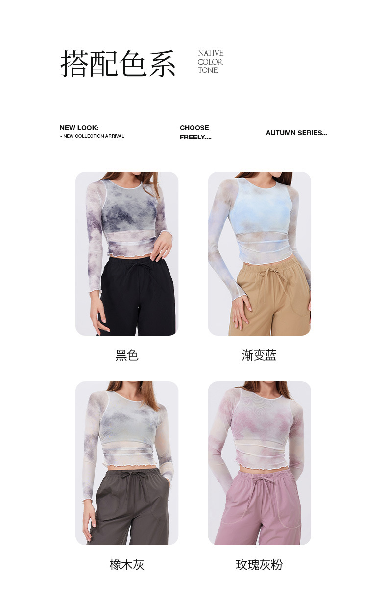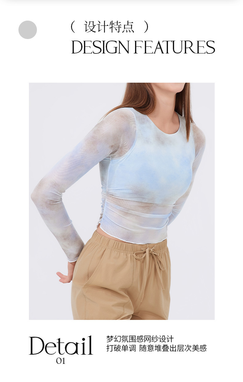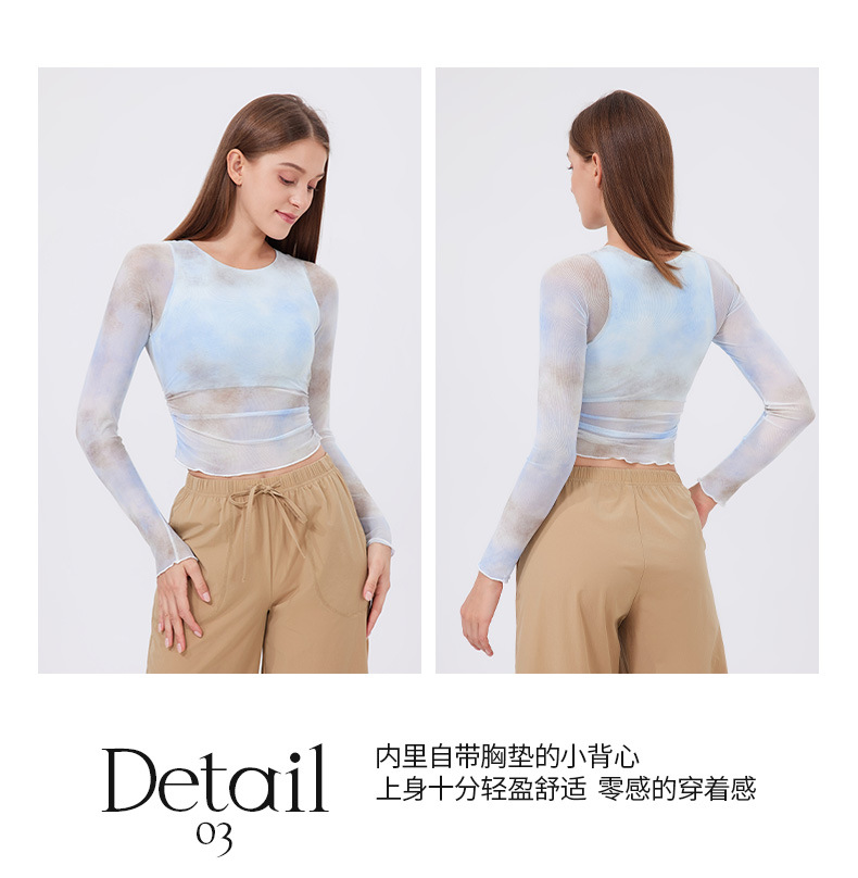 12/2024 Gradient yarn fake two-piece sports T-shirt women's long sleeve with chest pad yoga clothes mesh top quick-drying slim fitness clothes