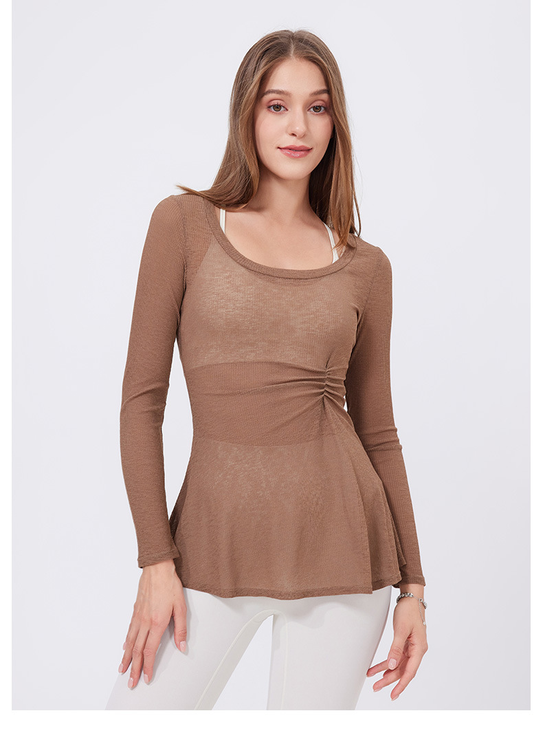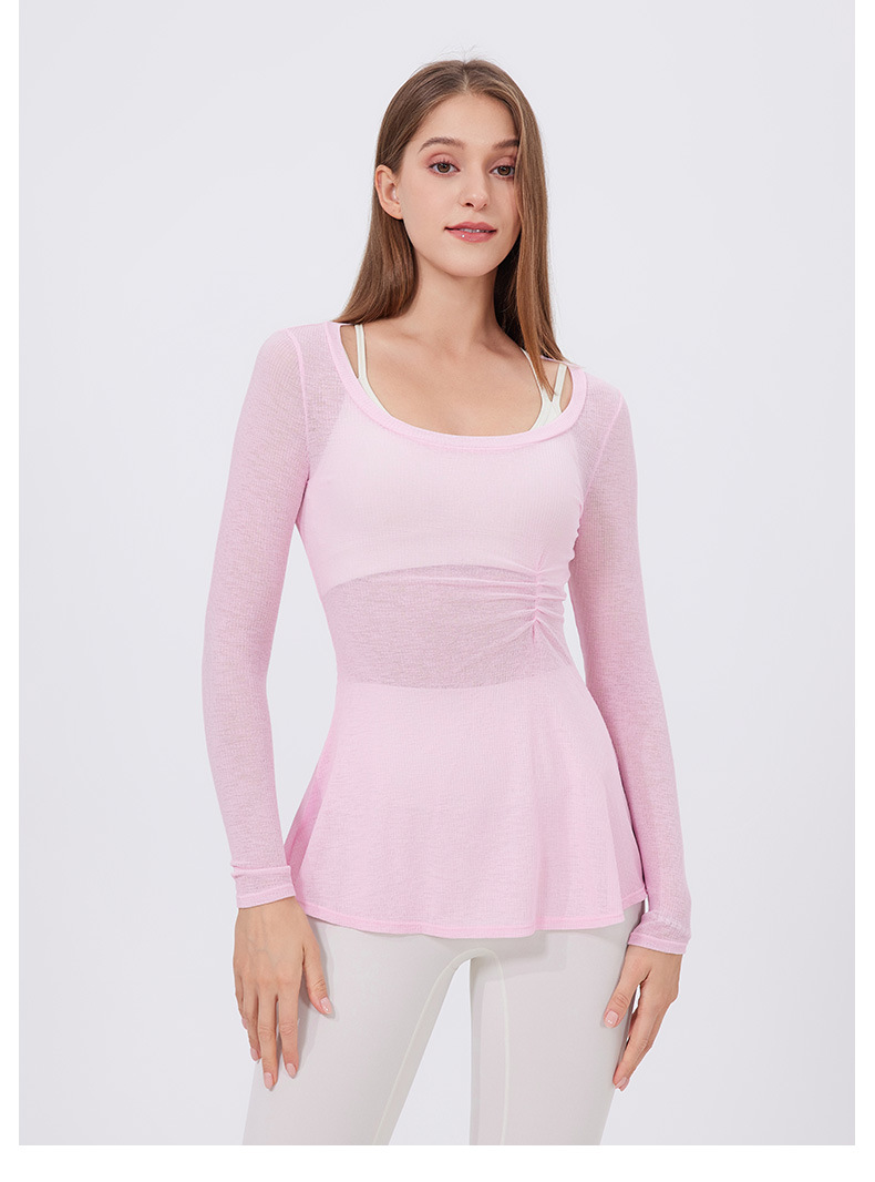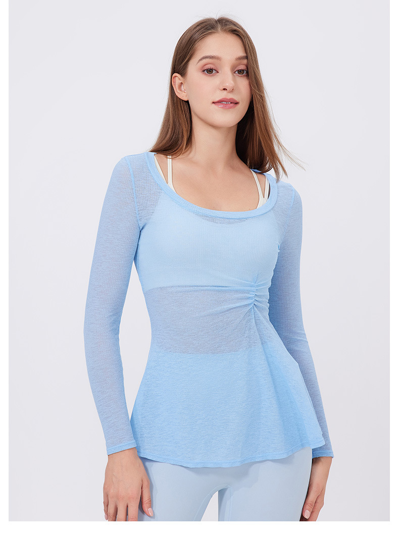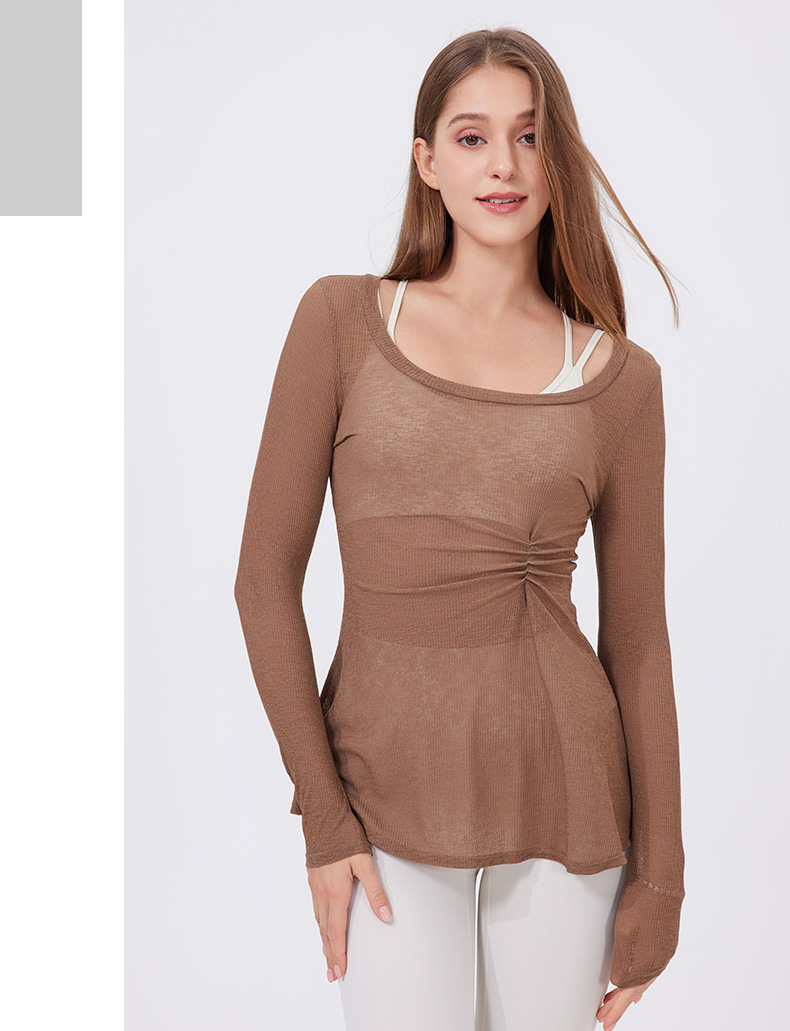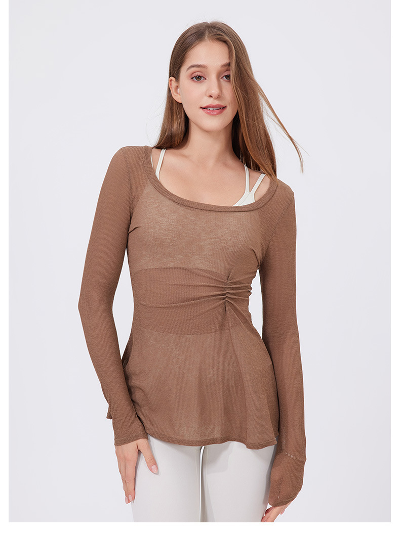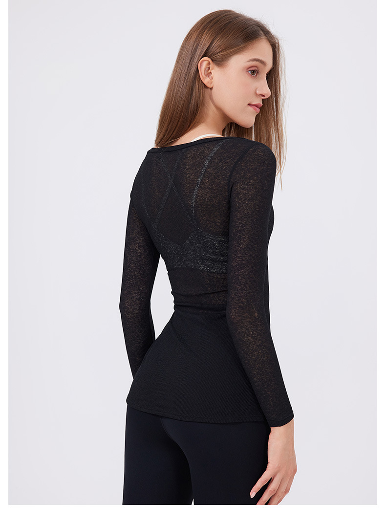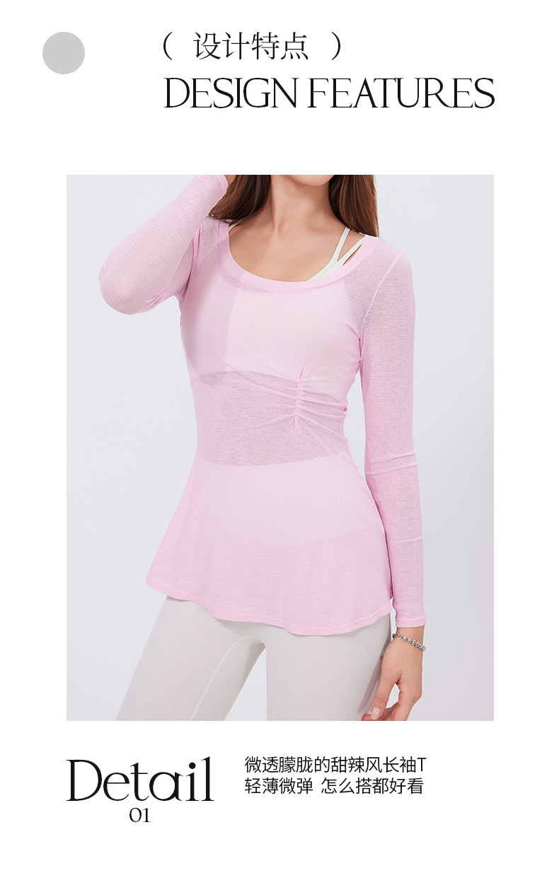 12/2024 Tight sports long-sleeved tops for women, round neck, mid-length, sexy, slim-fitting fitness clothes, internet celebrity quick-drying clothes, yoga T-shirts