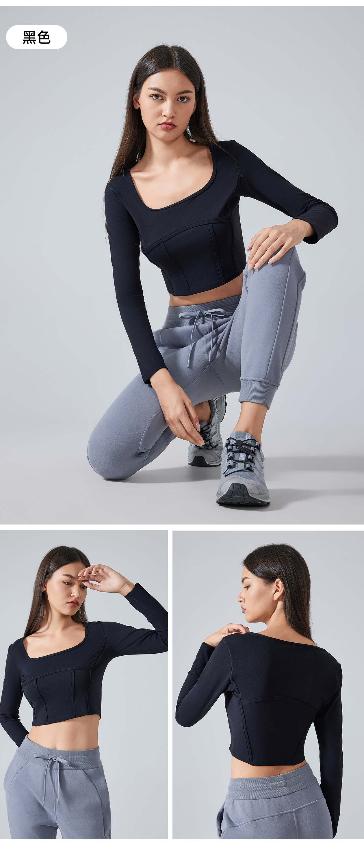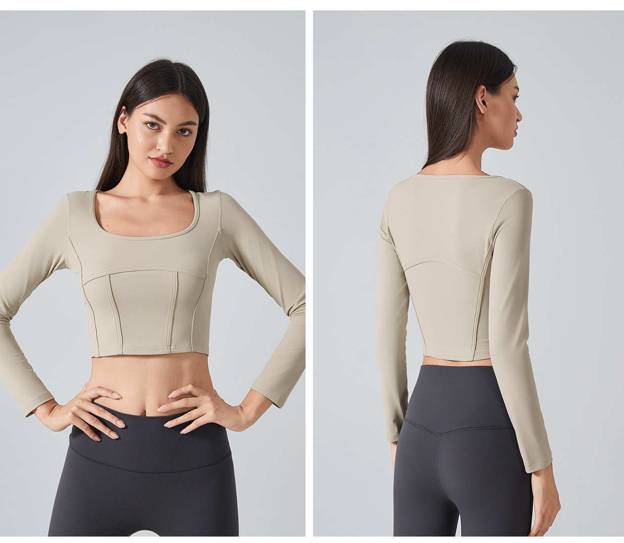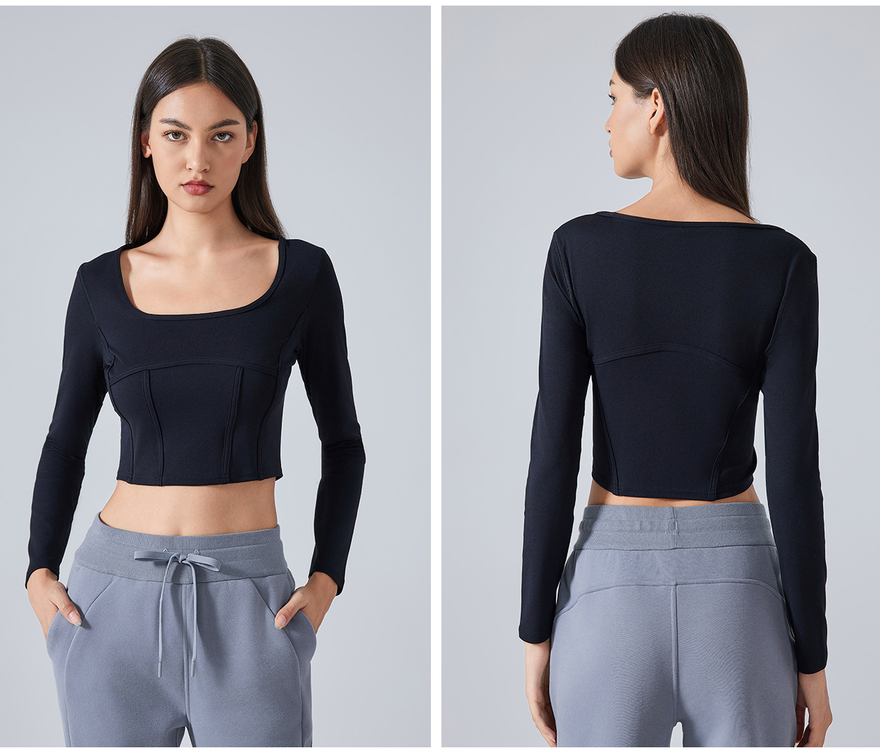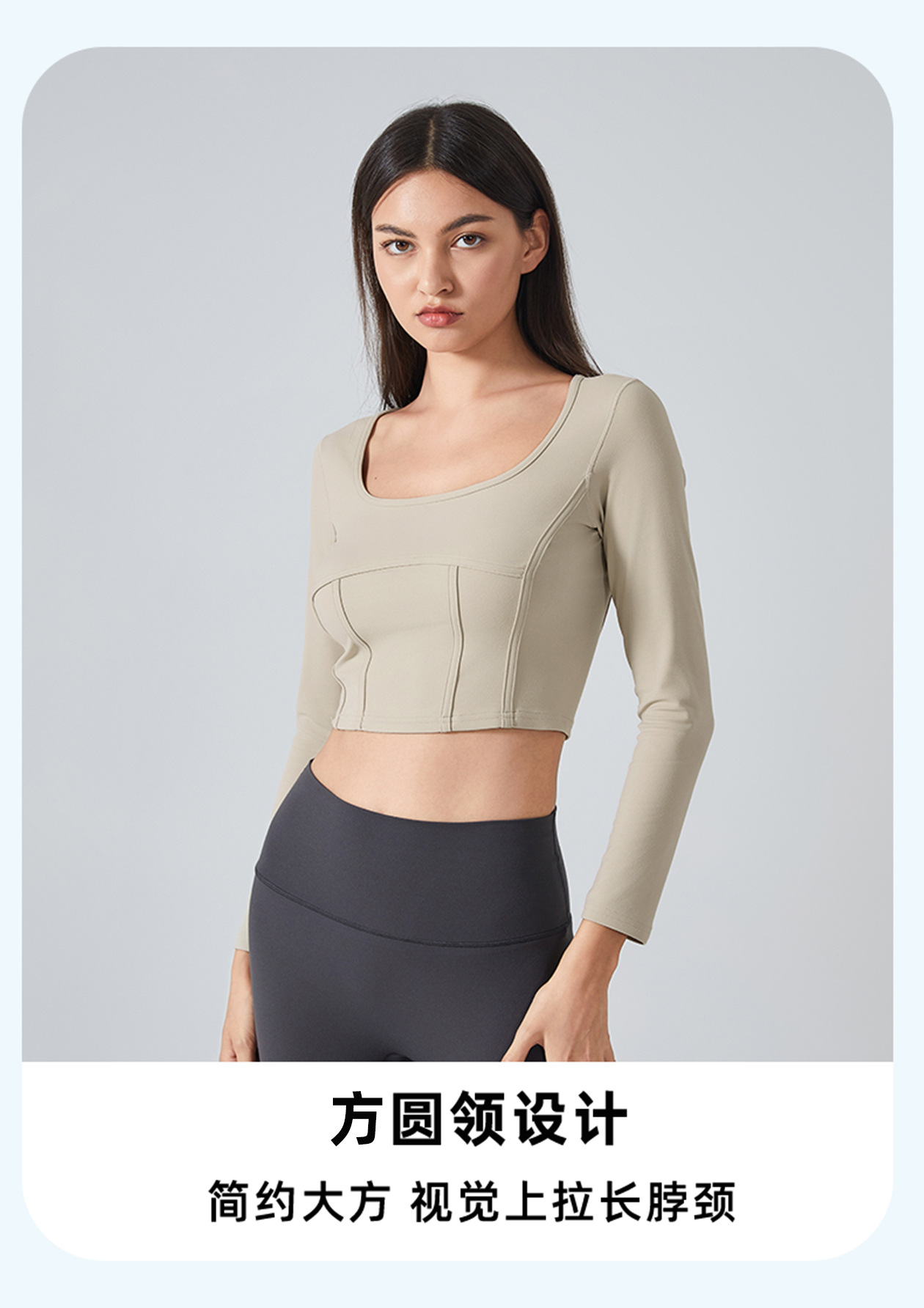 10/2024 square collar yoga wear high-end long-sleeved T-shirt for women slim fit sports fitness running tops DAW194