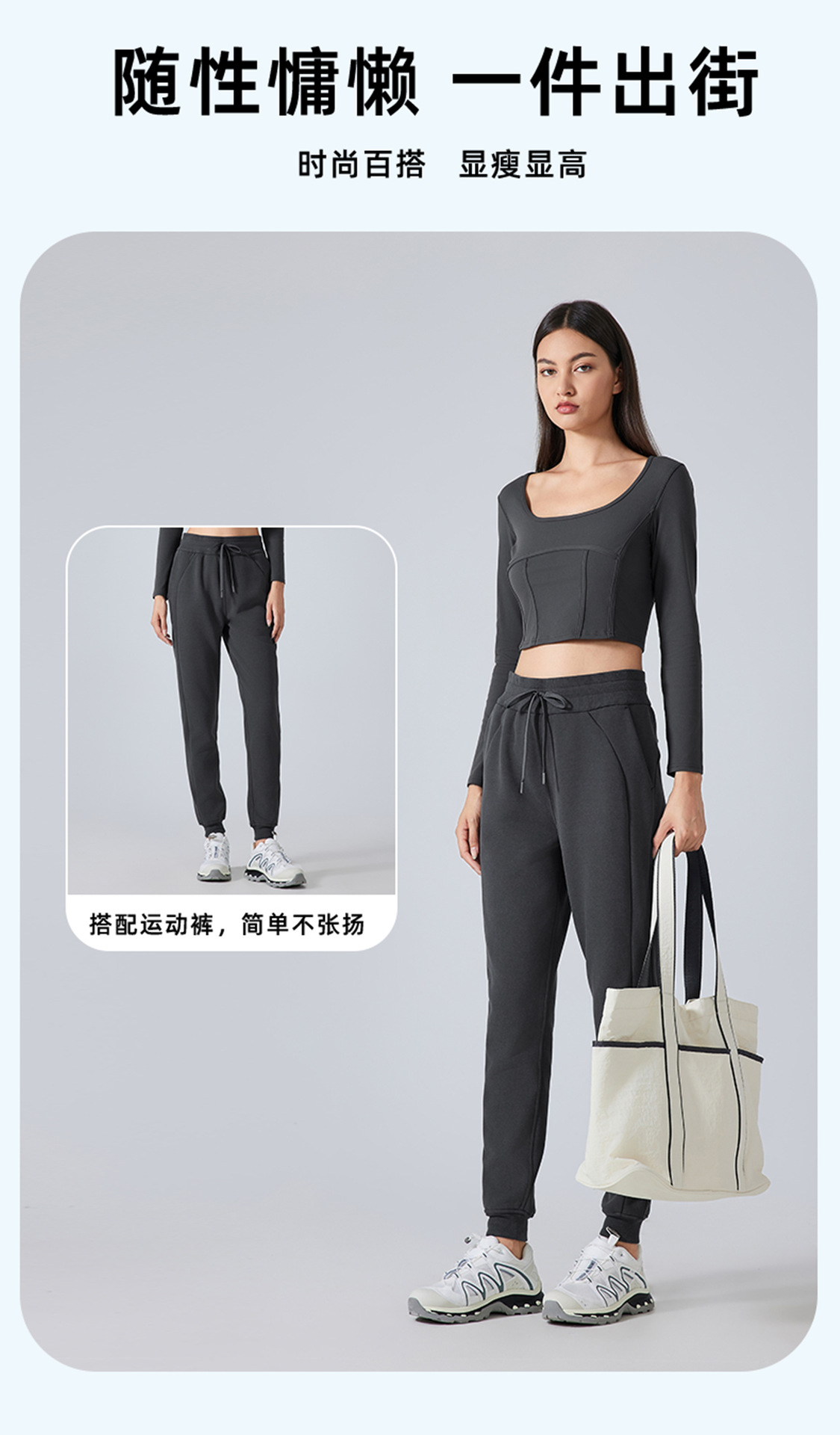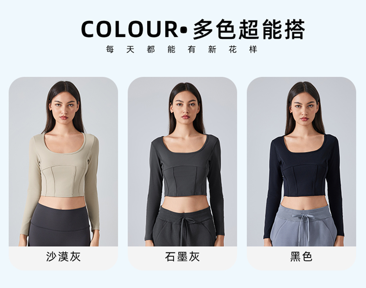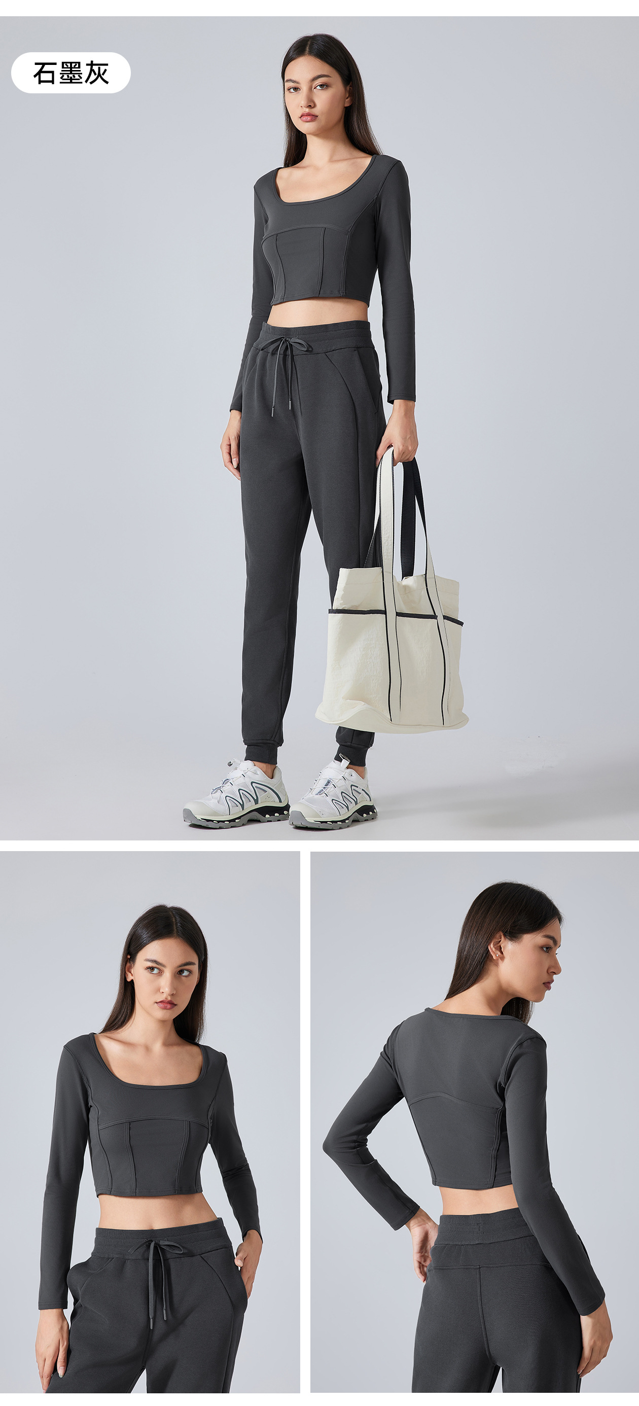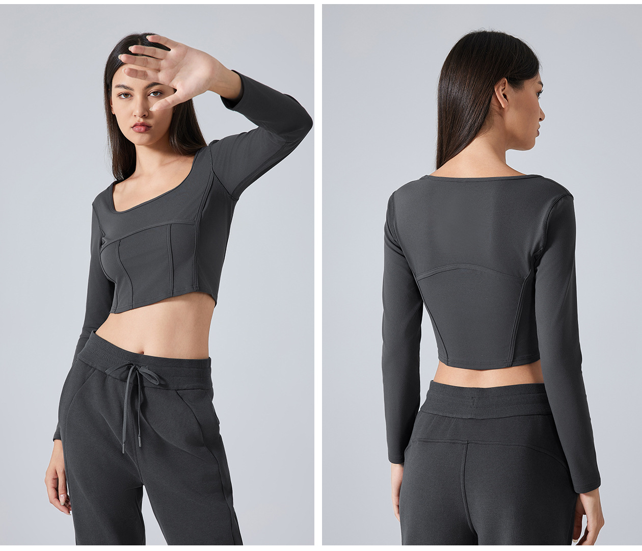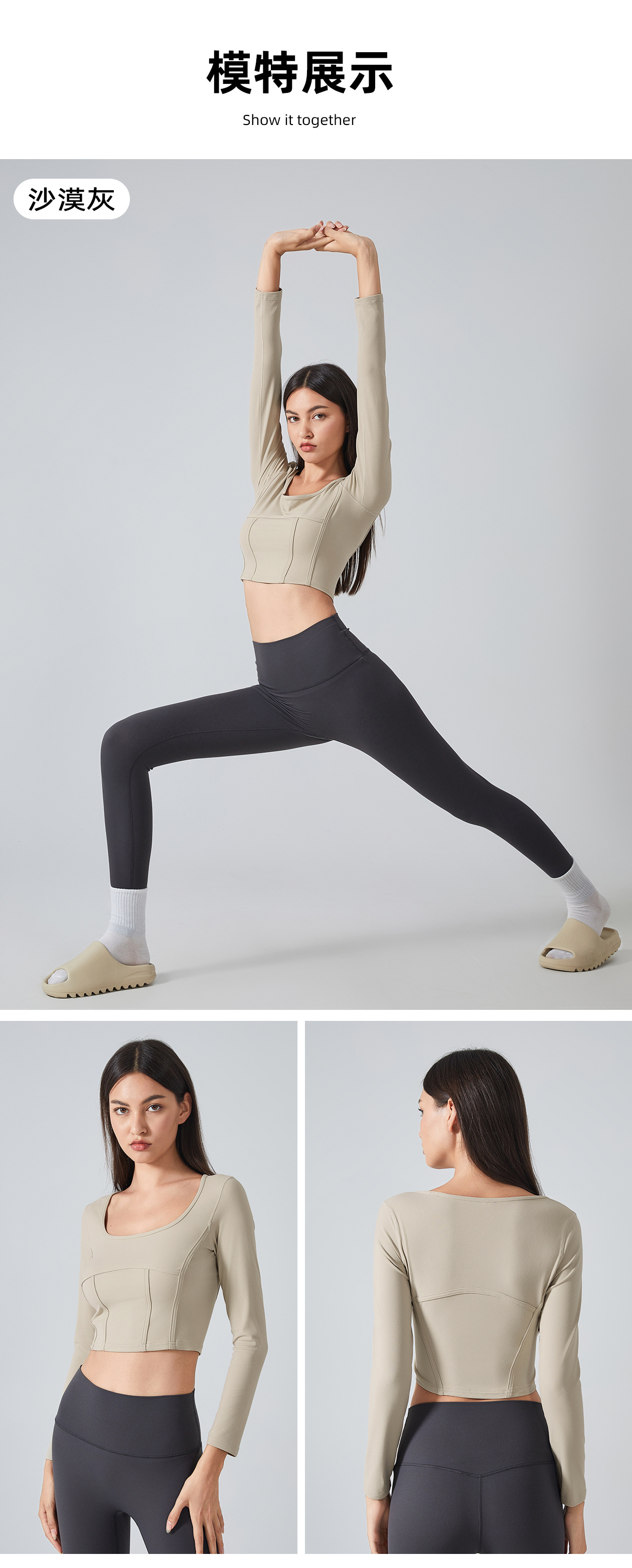 10/2024 square collar yoga wear high-end long-sleeved T-shirt for women slim fit sports fitness running tops DAW194