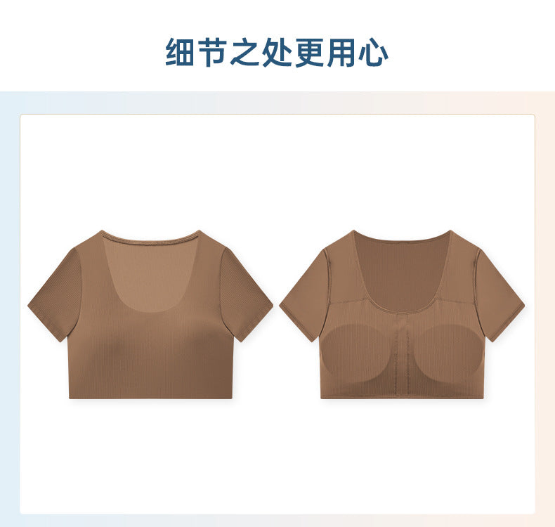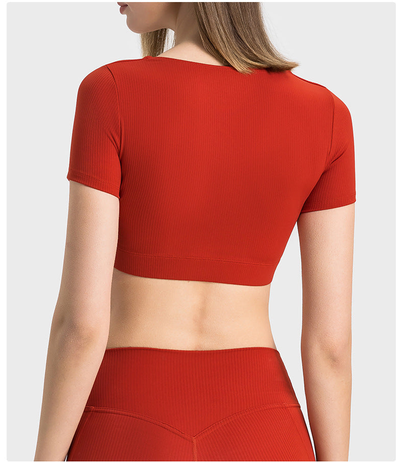 SPR striped ribbed short-slim sports short-sleeved women's cool navel exposed sexy all-match fitness yoga clothes
