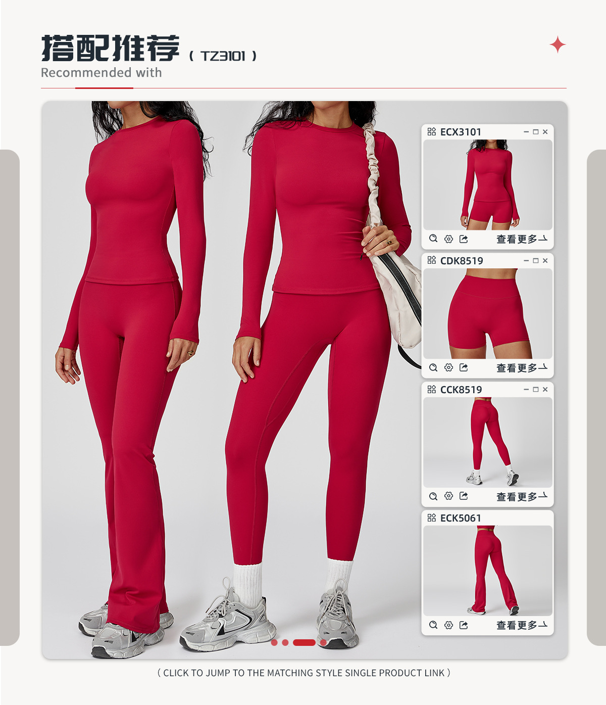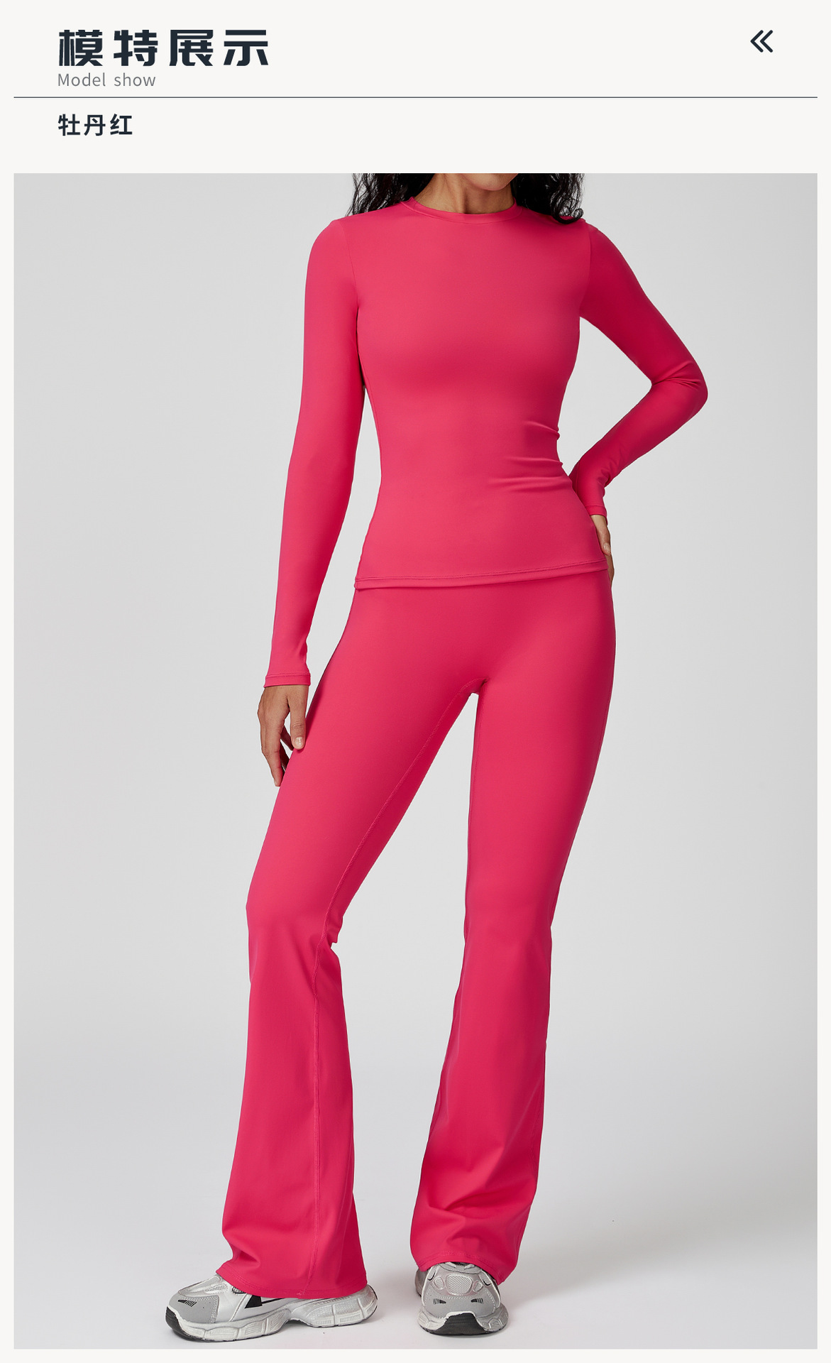 07/2025 Round neck yoga suit slim fit outdoor fitness clothes women's fitness running sports yoga clothes 3101