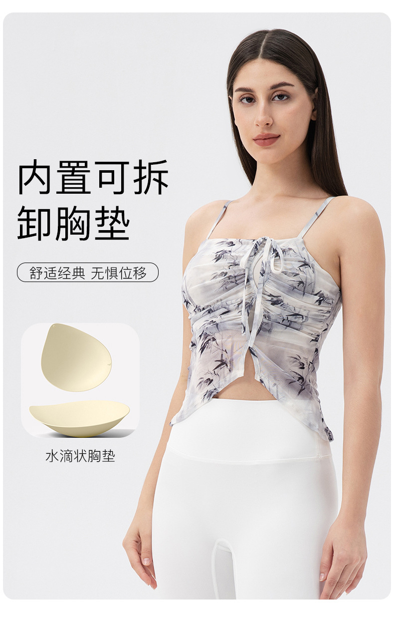 03/2025 Summer Yoga vest top Women with breast pad Beautiful back halter vest no underwire push-up bra