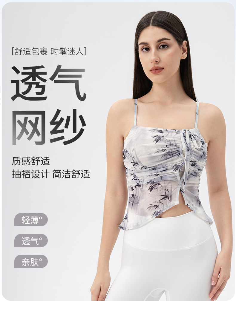 11/2024 Ink Print Yoga Vest Women's Slim Sports Suspender Mesh Breathable Dance Pilates Fitness Vest Top