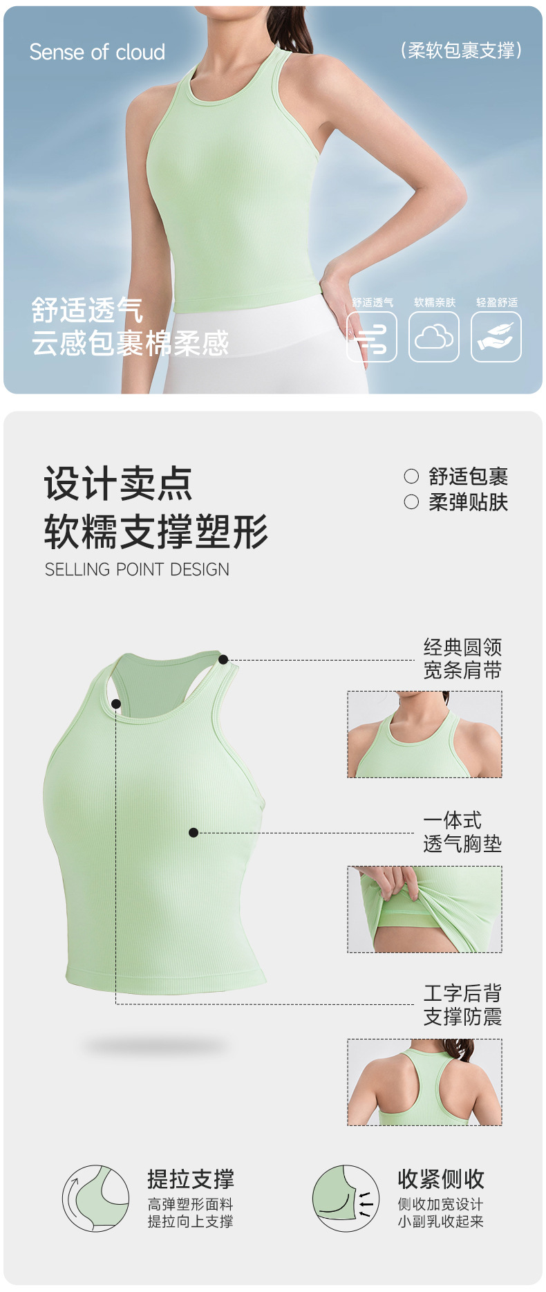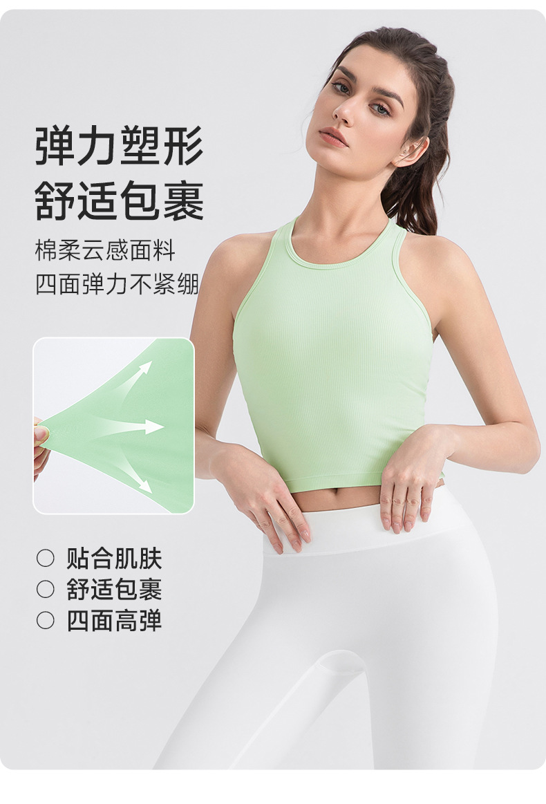 03/2025 Summer Yoga vest top Women with breast pad Beautiful back halter vest no underwire push-up bra