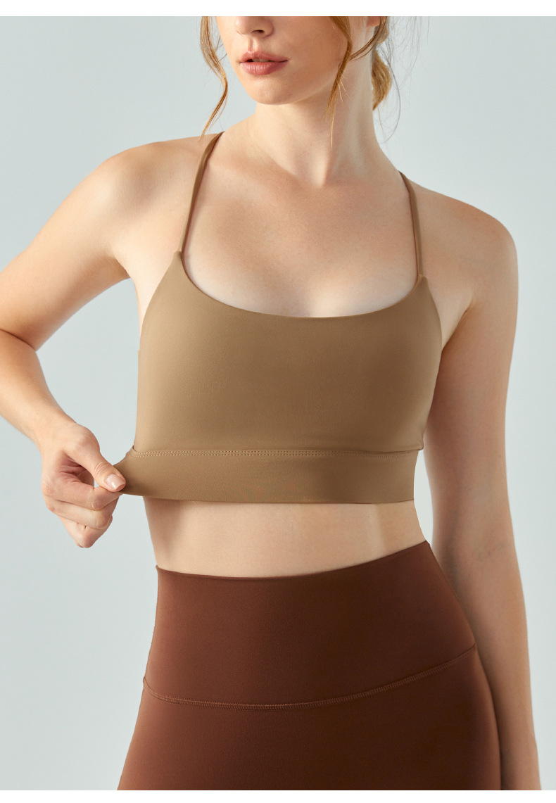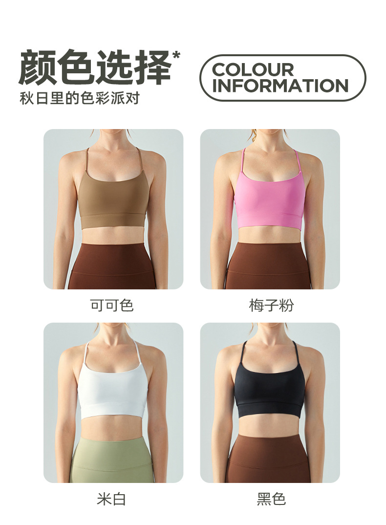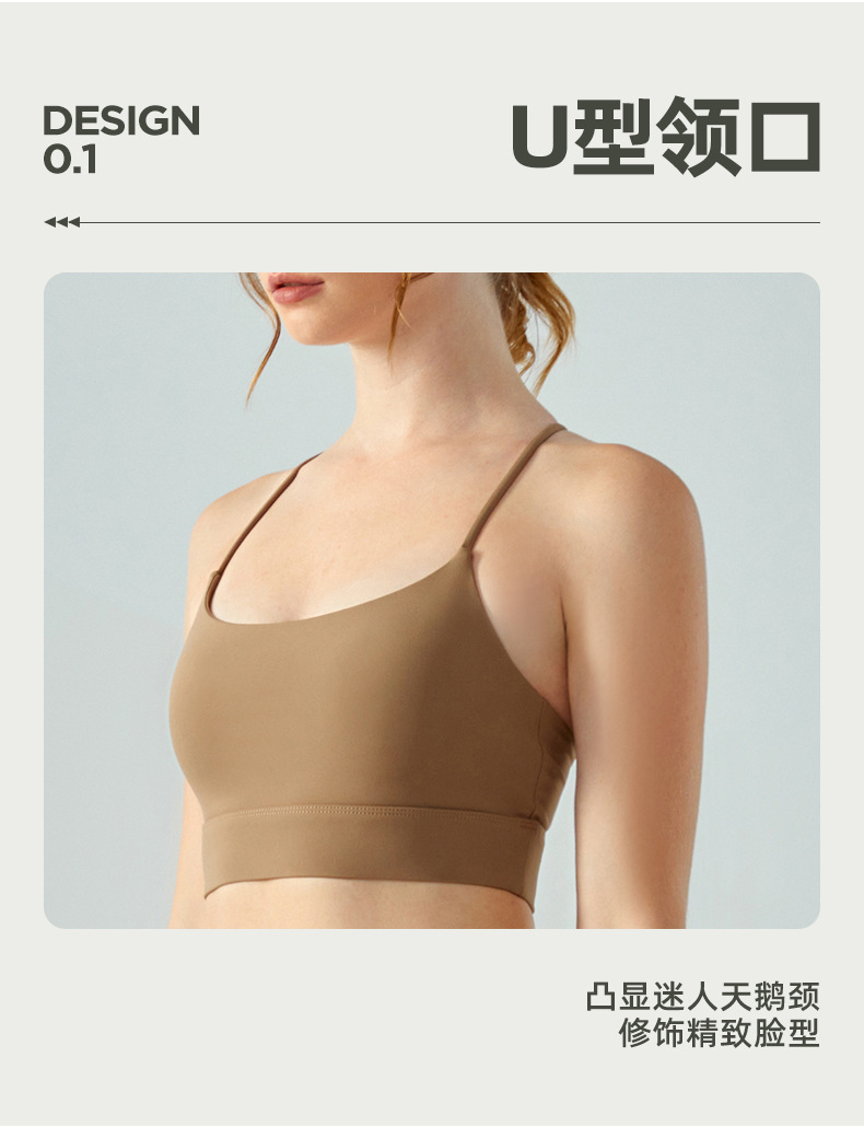 08/2024 Yoga vests for women with breast pads U-shaped skinny strap fitness bra Solid color sexy nude beautiful back sports bra