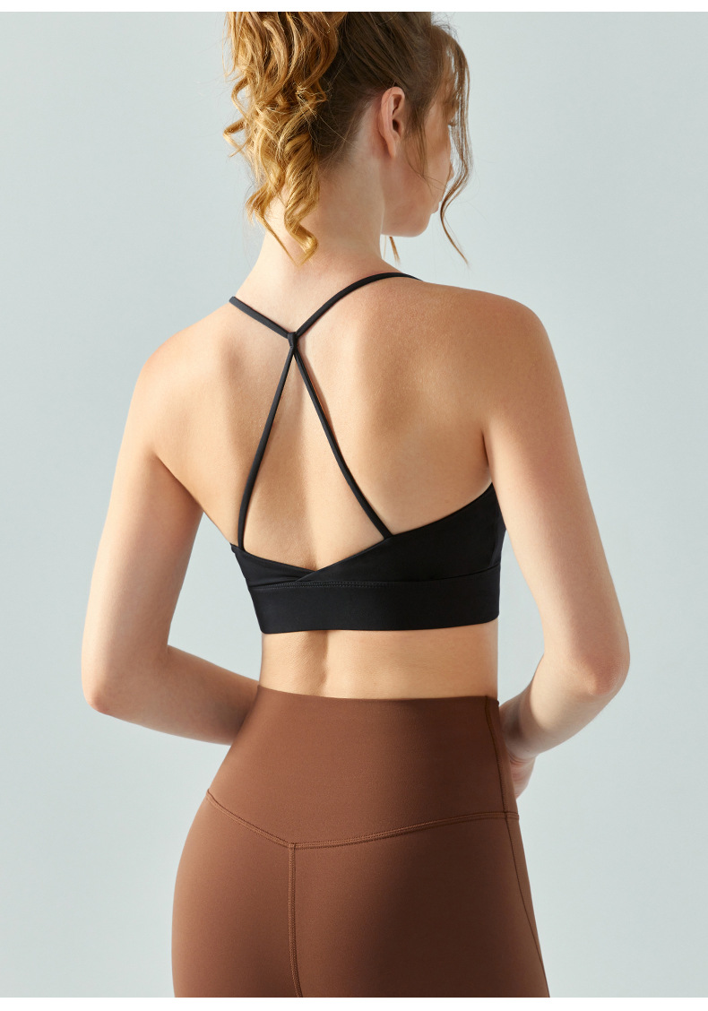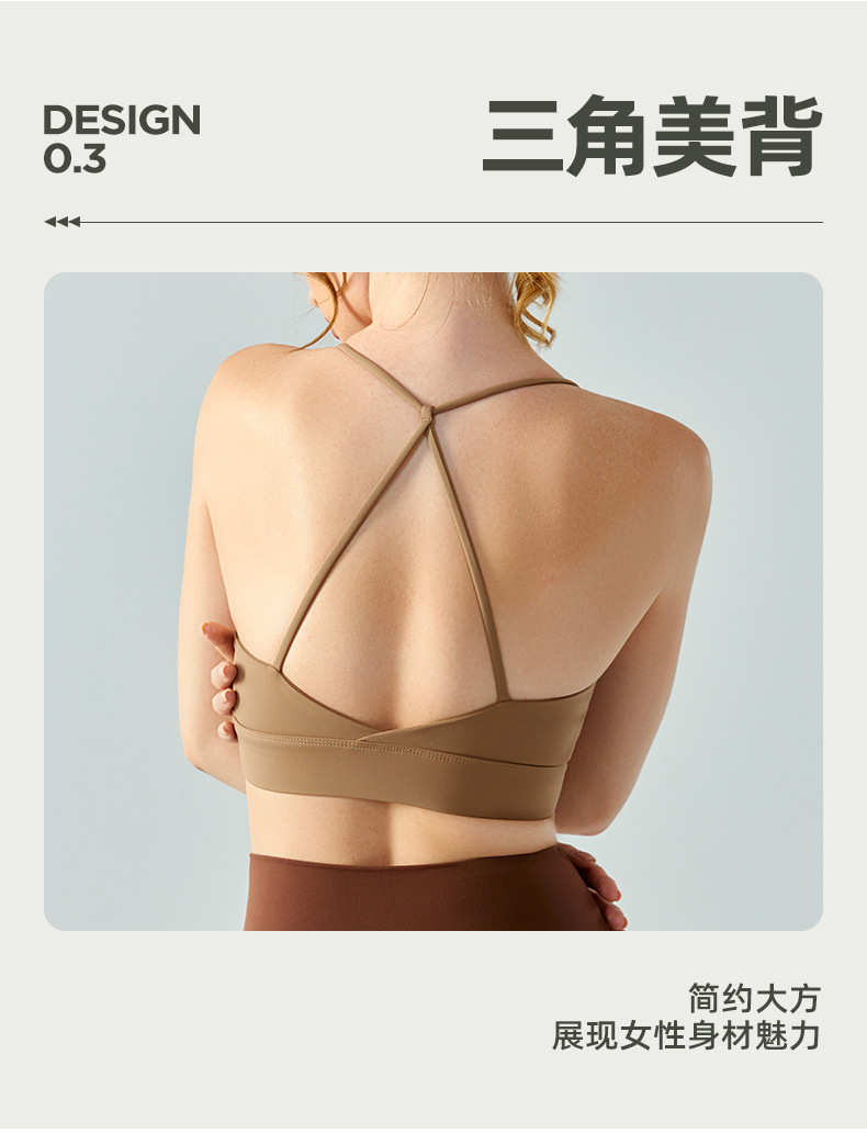 2022 new triangle beauty back fitness sports bra thin shoulder straps gathered nude yoga bra