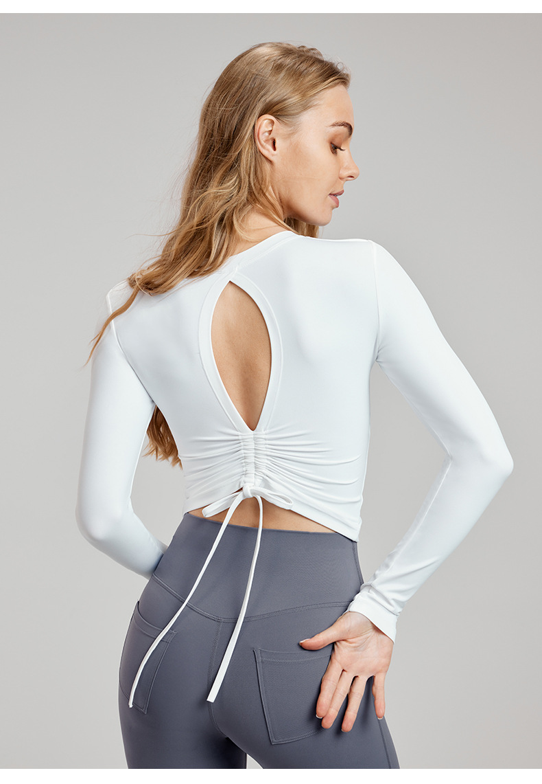 09/2024 Autumn and winter yoga wear long sleeve top women's high sense hollow beauty back sexy sports coat with chest pad fitness top