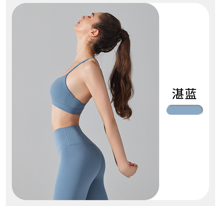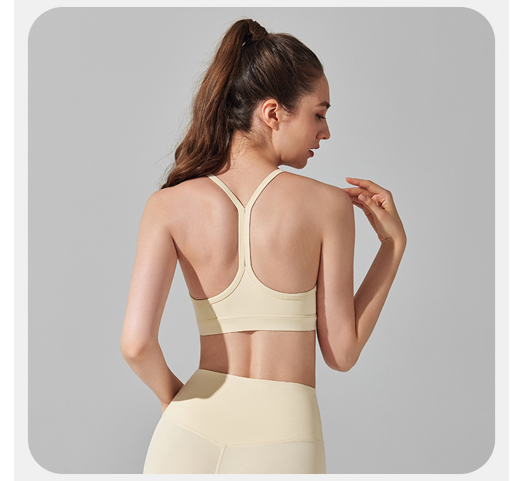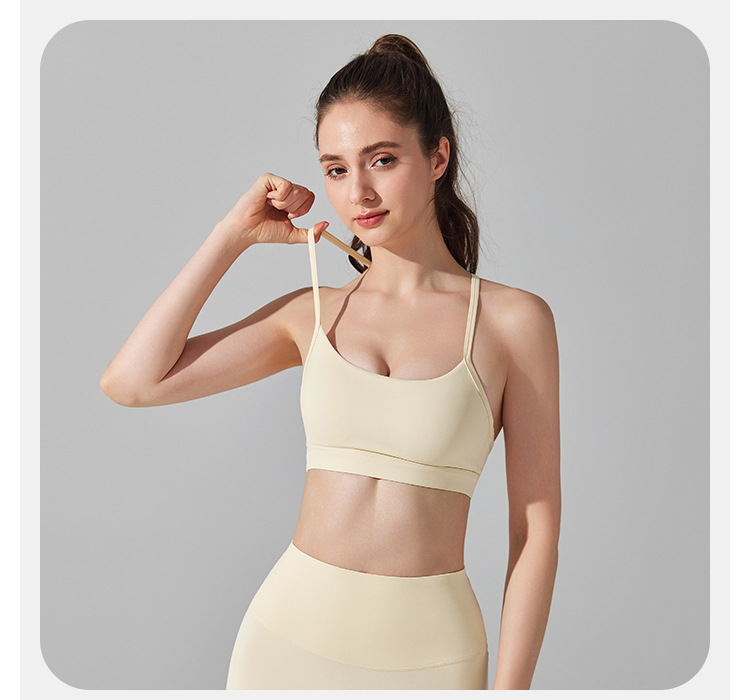 2022 new triangle beauty back fitness sports bra thin shoulder straps gathered nude yoga bra