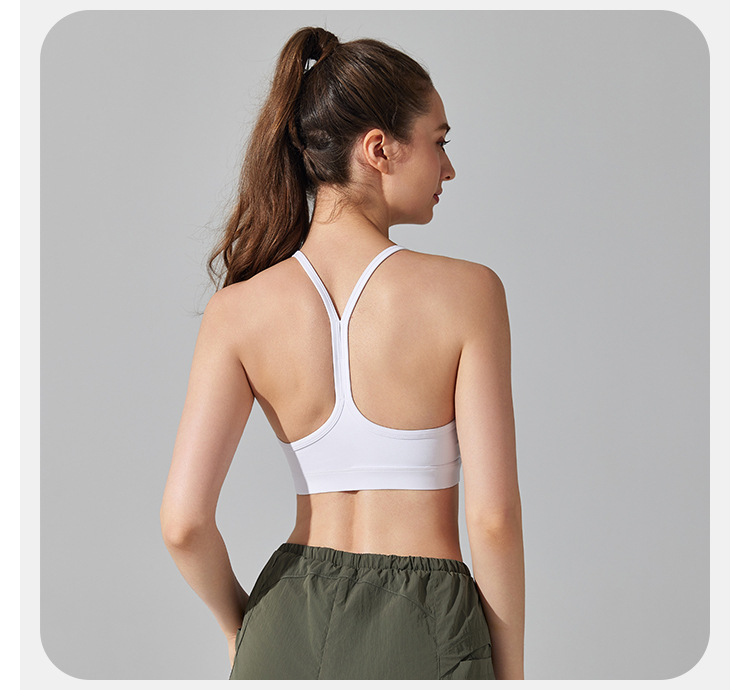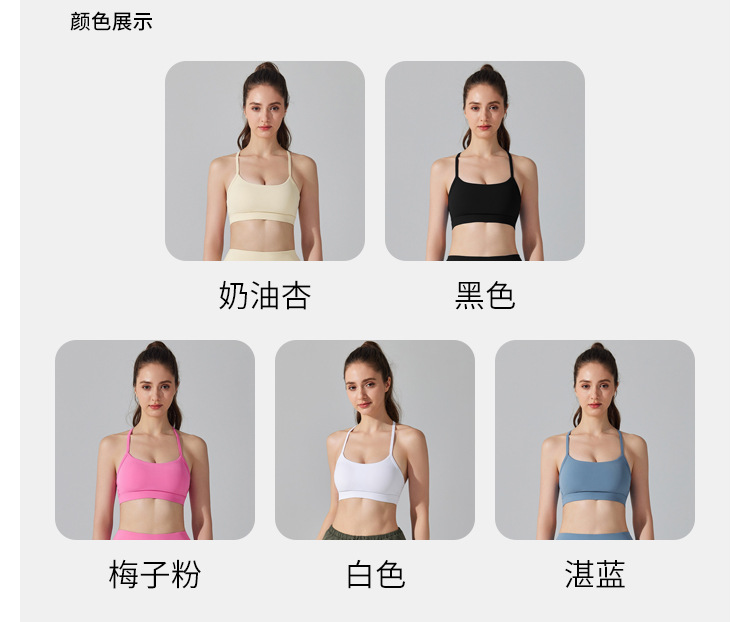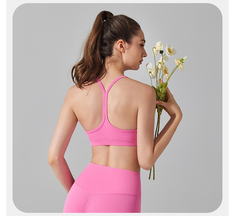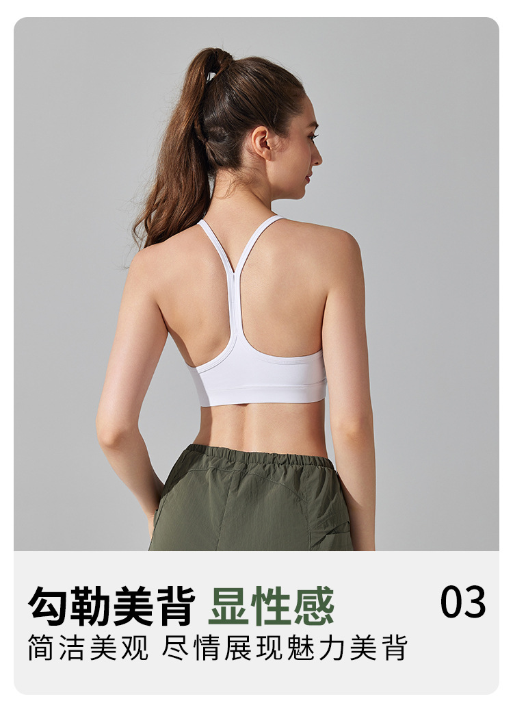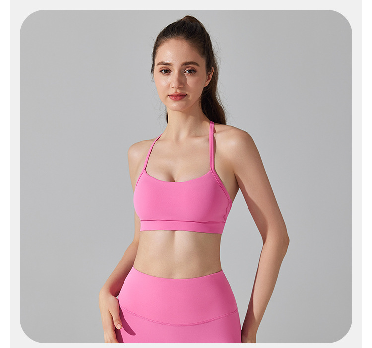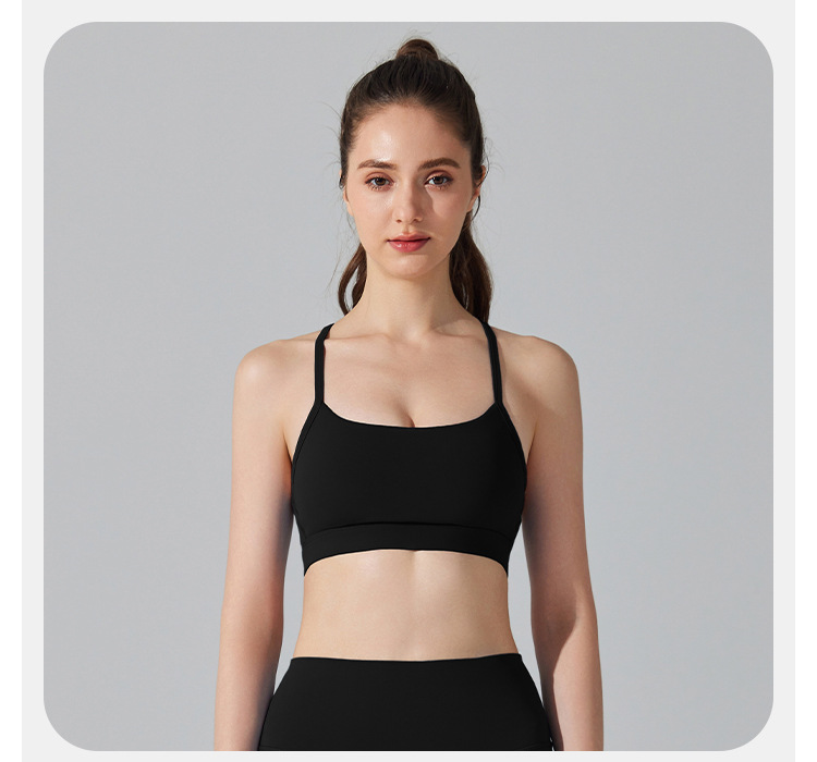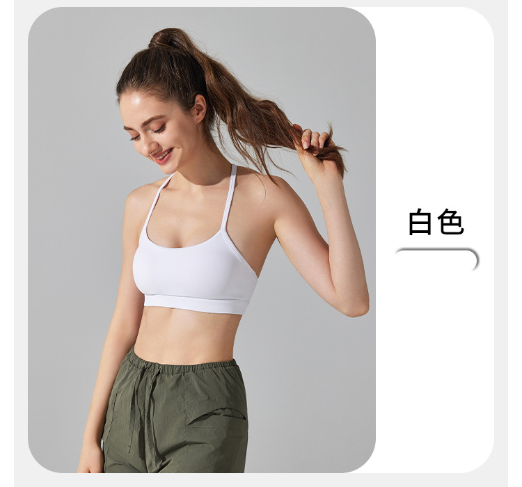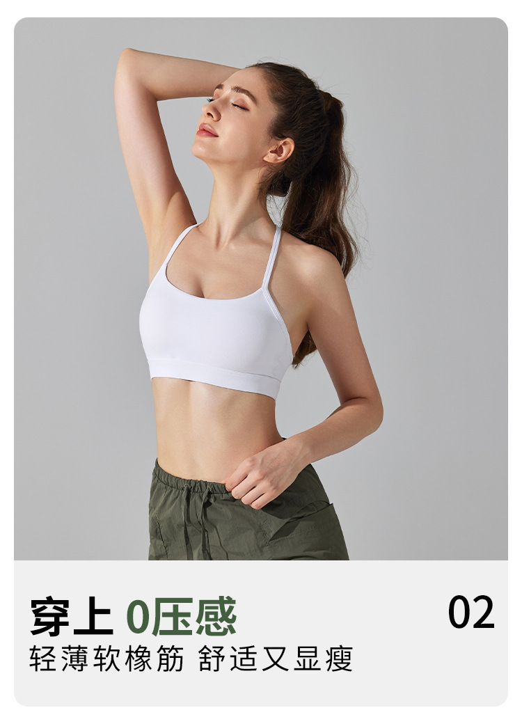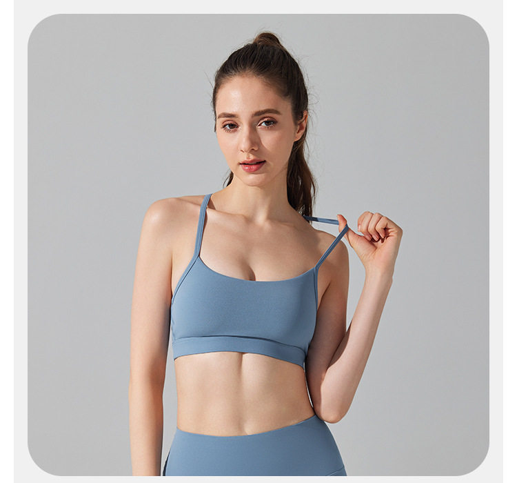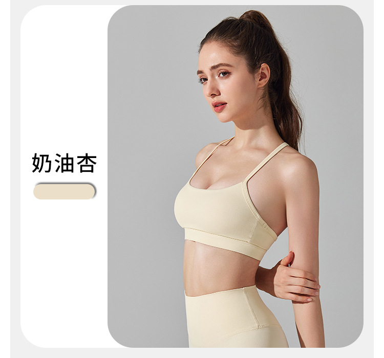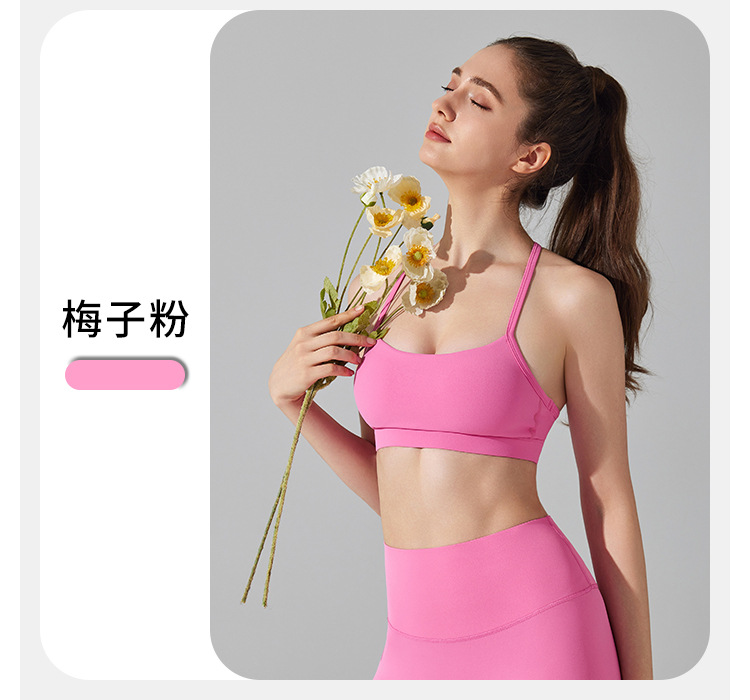 10/2024 Beautiful back sports bra with thin straps underwear yoga Pilates sling fitness running shockproof side breast vest for women