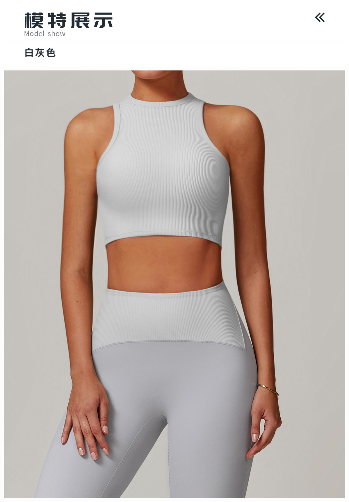 10/2024 Beautiful back yoga vest casual tights with chest pads underwear sports shockproof double wide shoulder straps top 8889