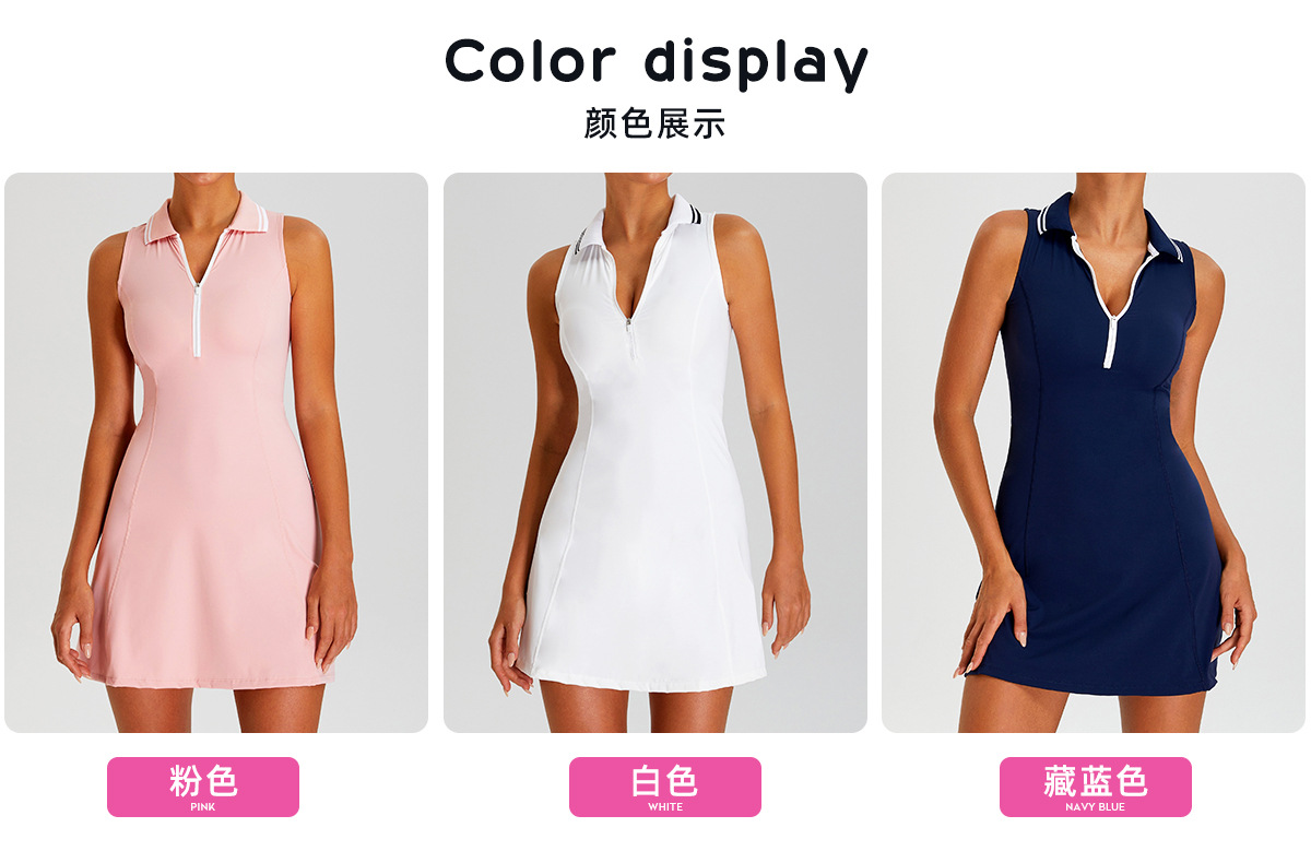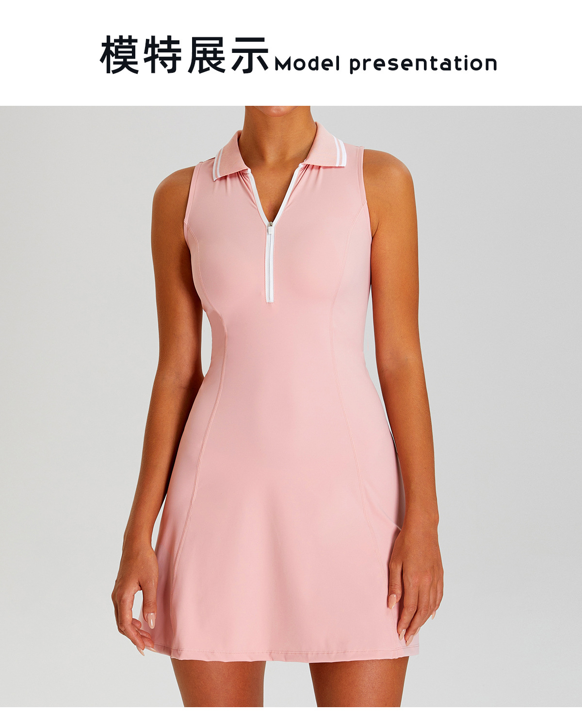 06/2025 Breathable POLO collar dress outdoor fitness sports A-line waist sleeveless tennis skirt yoga sports skirt