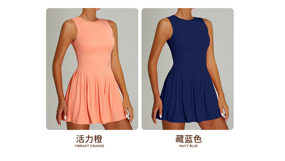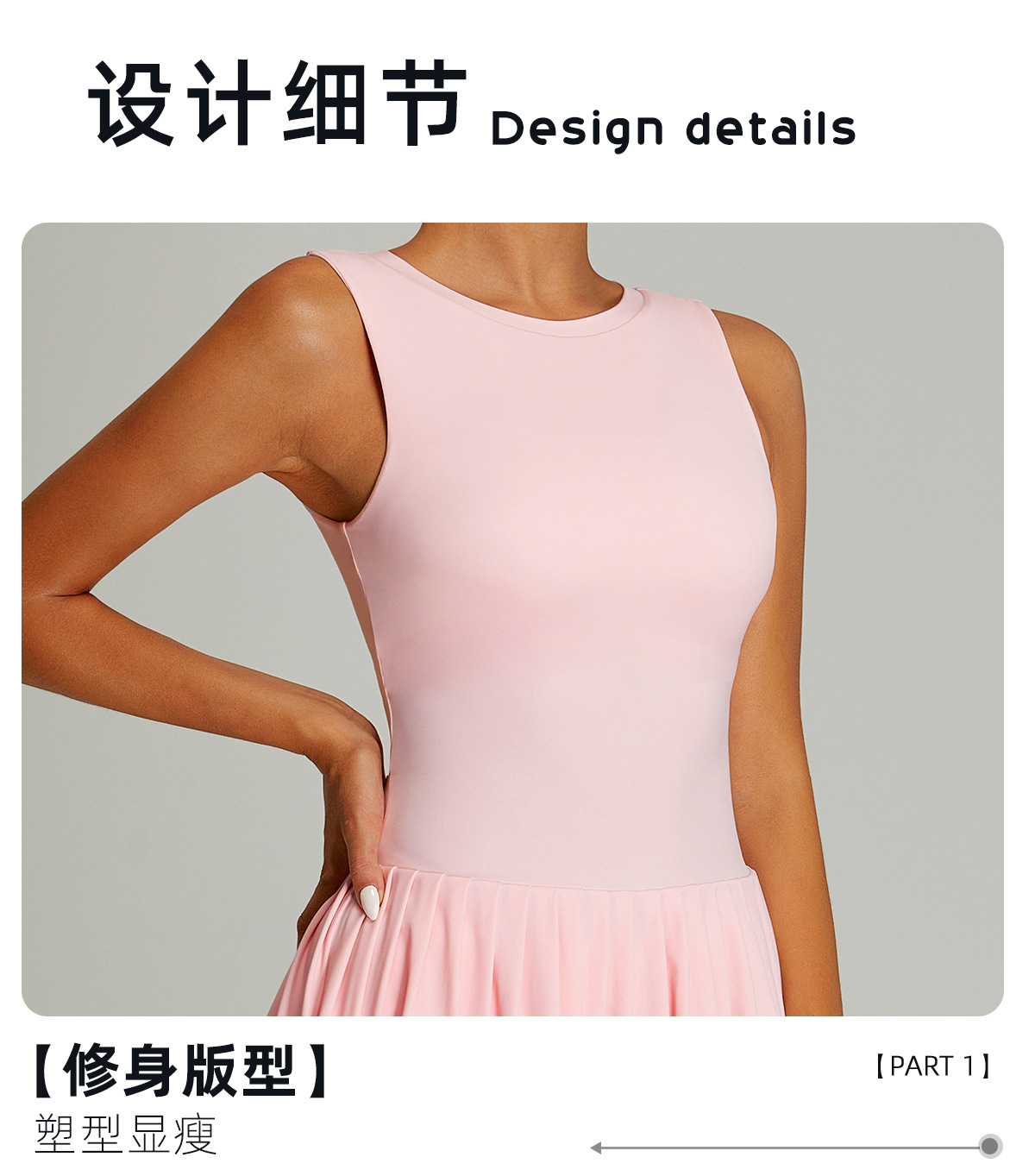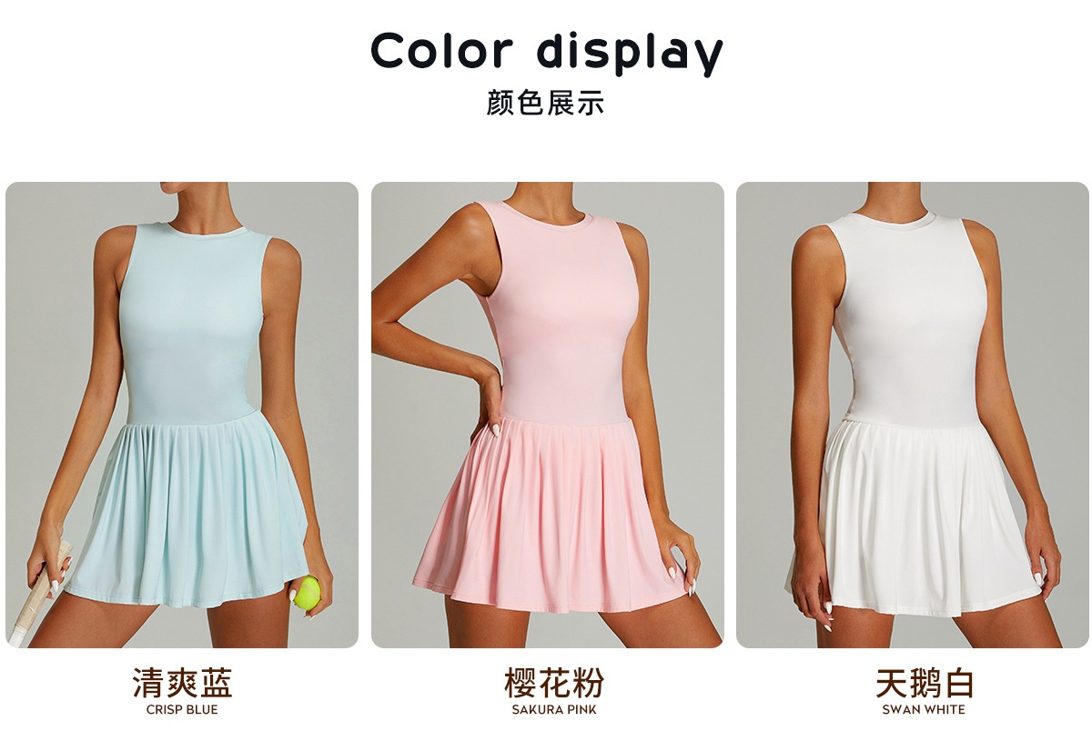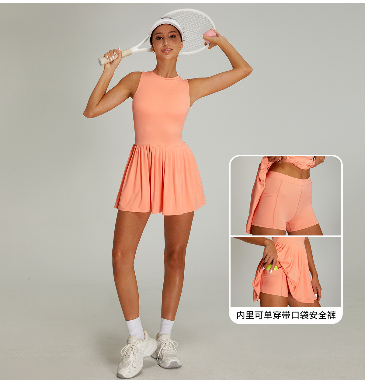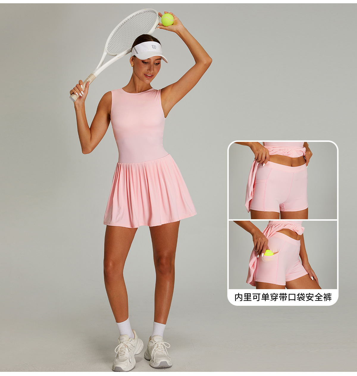 04/2025 Breathable sleeveless tennis skirt women's high-intensity sports yoga wear anti-exposure fitness dress