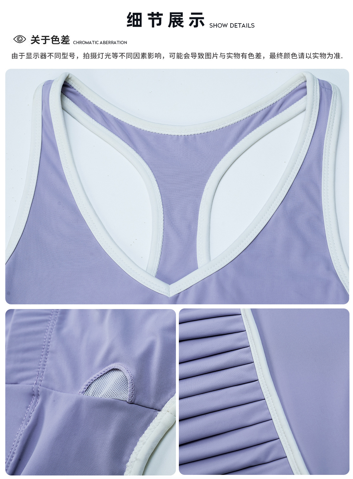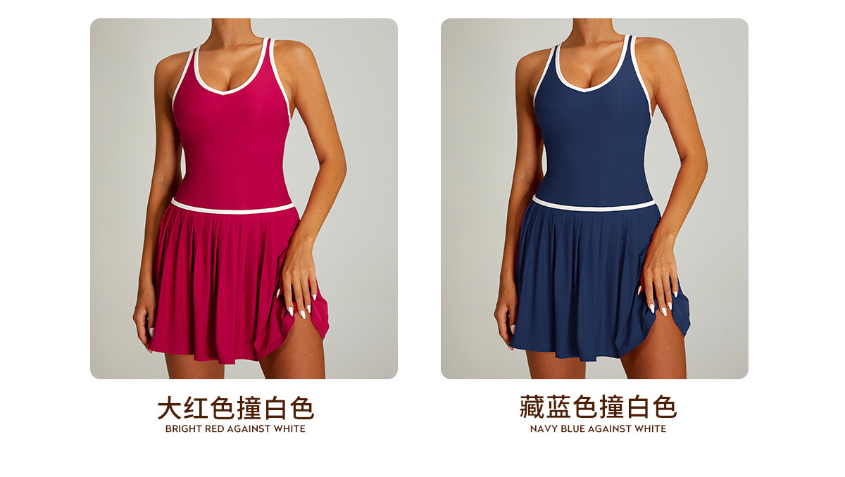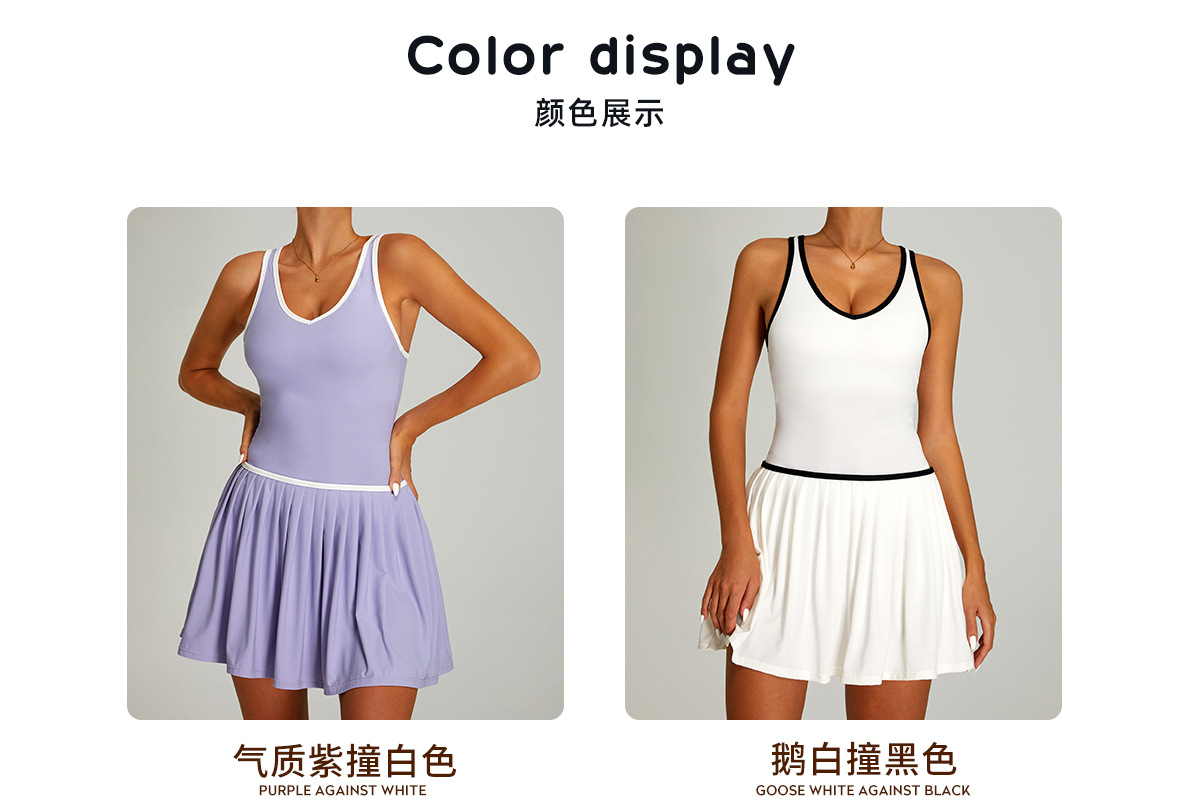 04/2025 Contrast color I-shaped beautiful back yoga dress for women nude breathable V-neck anti-exposure fitness tennis skirt