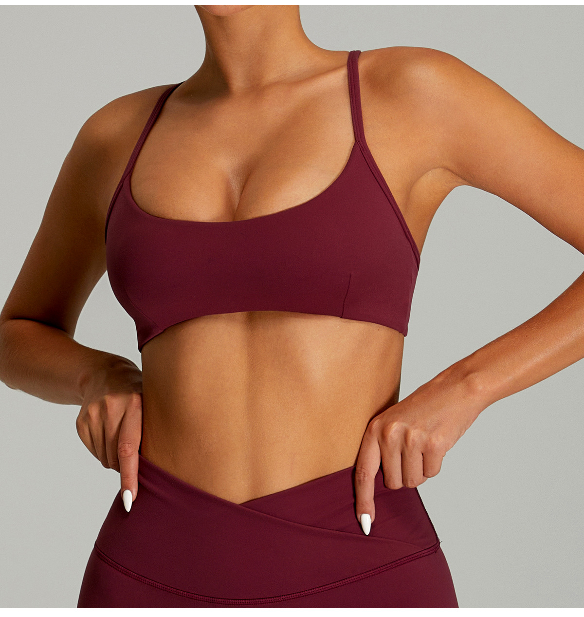 04/2025 Summer new cross straps beautiful back women nude tight sports yoga clothes fitness bra outer wear running underwear