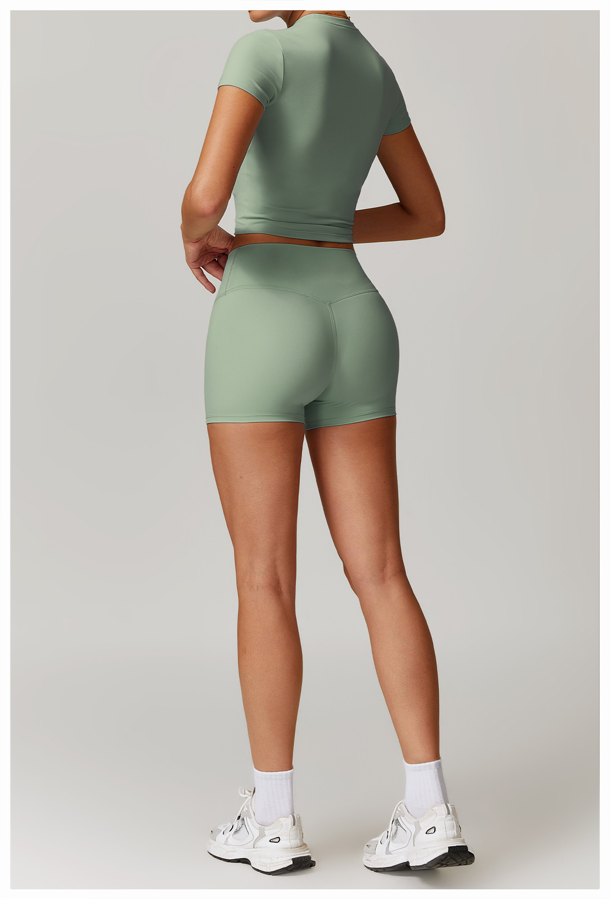 08/2024 Cross high waist yoga shorts tight nude peach hip sports shorts women's outdoor fitness pants 8843